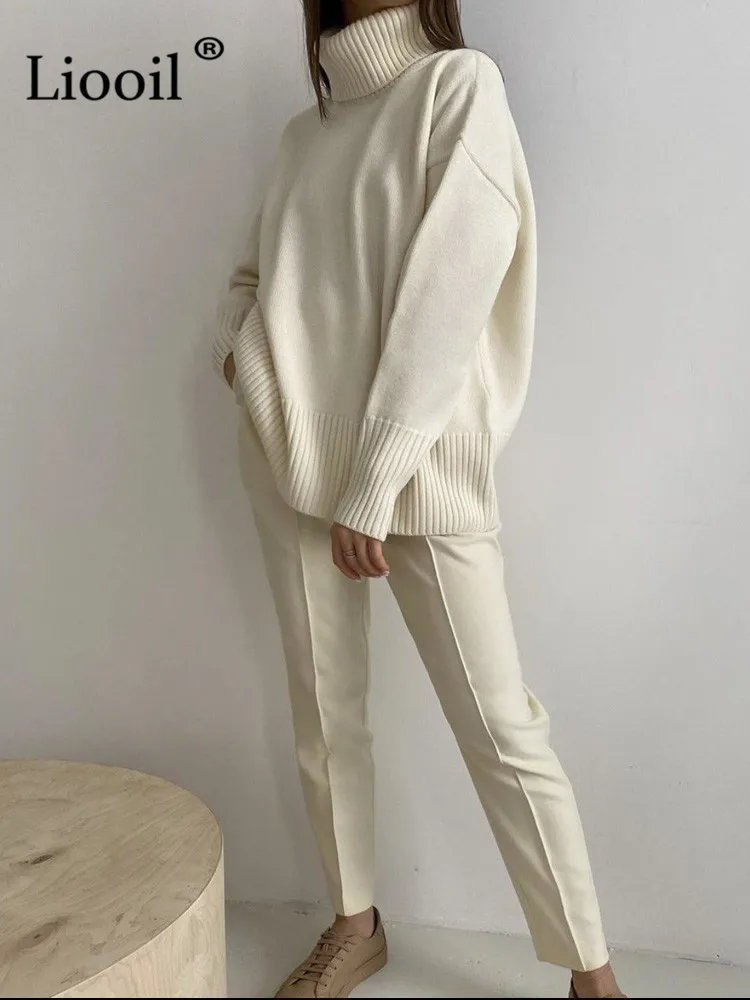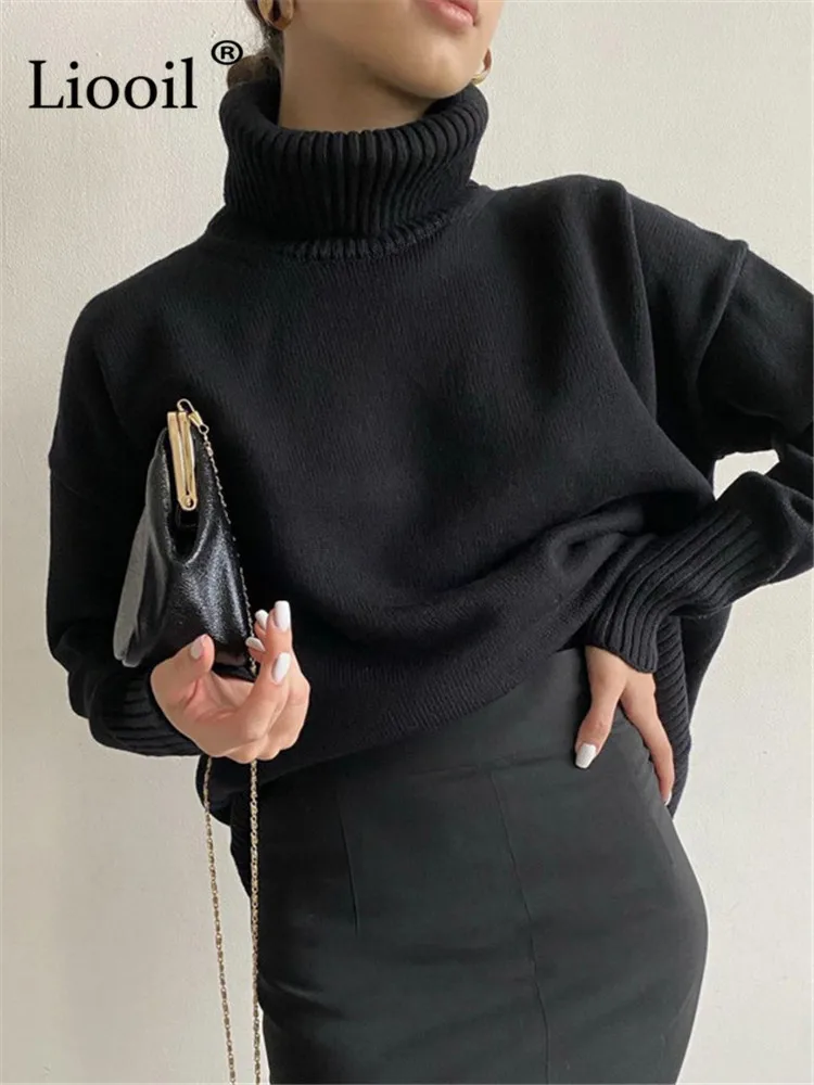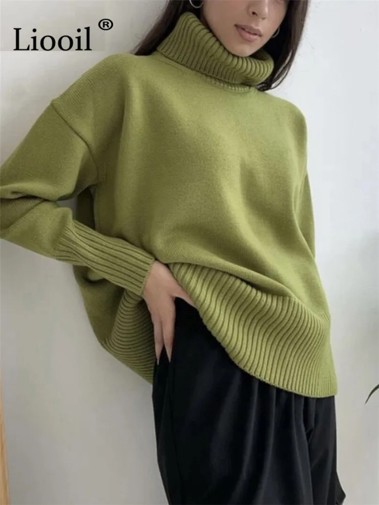 Yipinpay Women Turtleneck Baggy Sweater Pullovers Long Sleeve Loose Knitted Tops Streetwear Thick Jumper 2023 Autumn Winter Knit Sweaters
