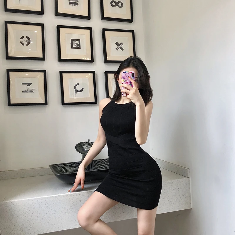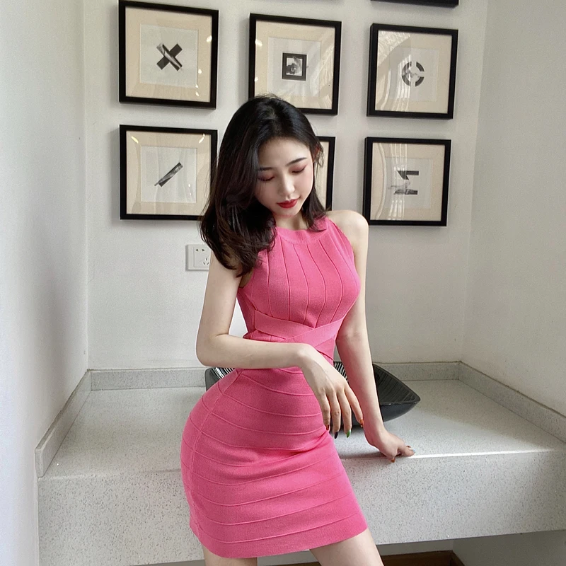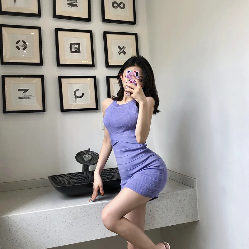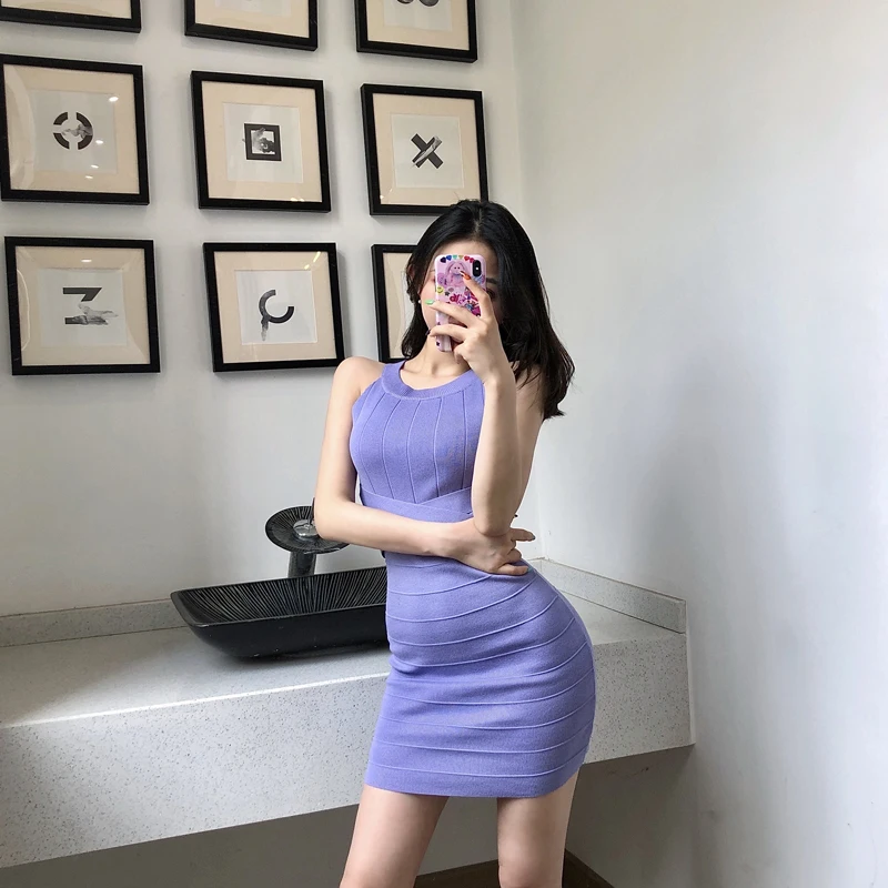 Yipinpay Women Vestido Mujer Sexy Solid Wild Off The Shoulder O Sleeveless Purple Knitted Dress Mini Robe Femme Stretch Hip Tank