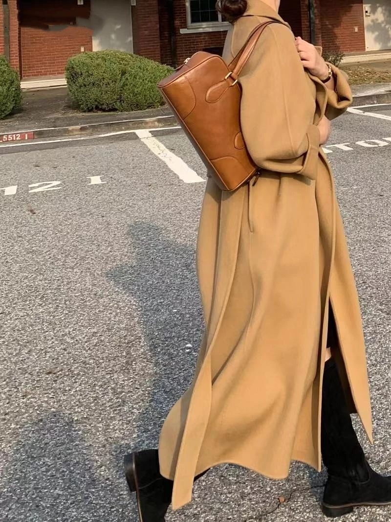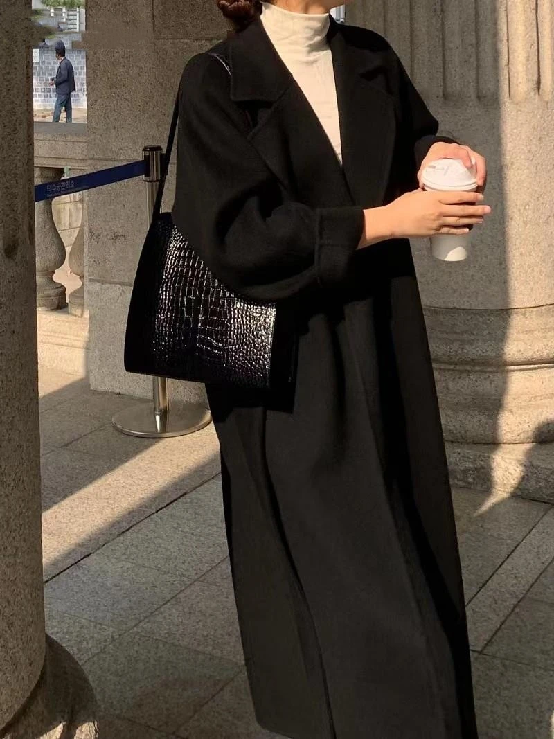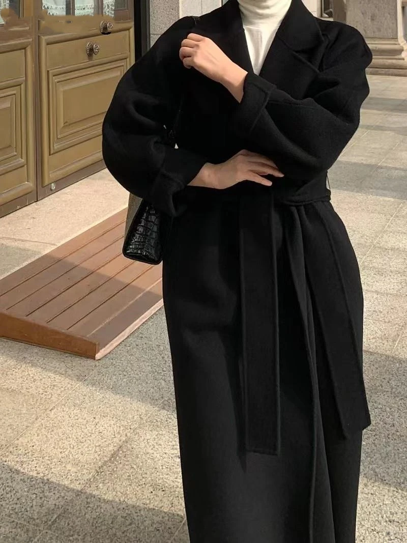 Yipinpay Women Vintage Long Woolen Coat With Belt Fashion Solid Long Sleeve Jackets Chic Outerwear Ladies Casual Overcoat