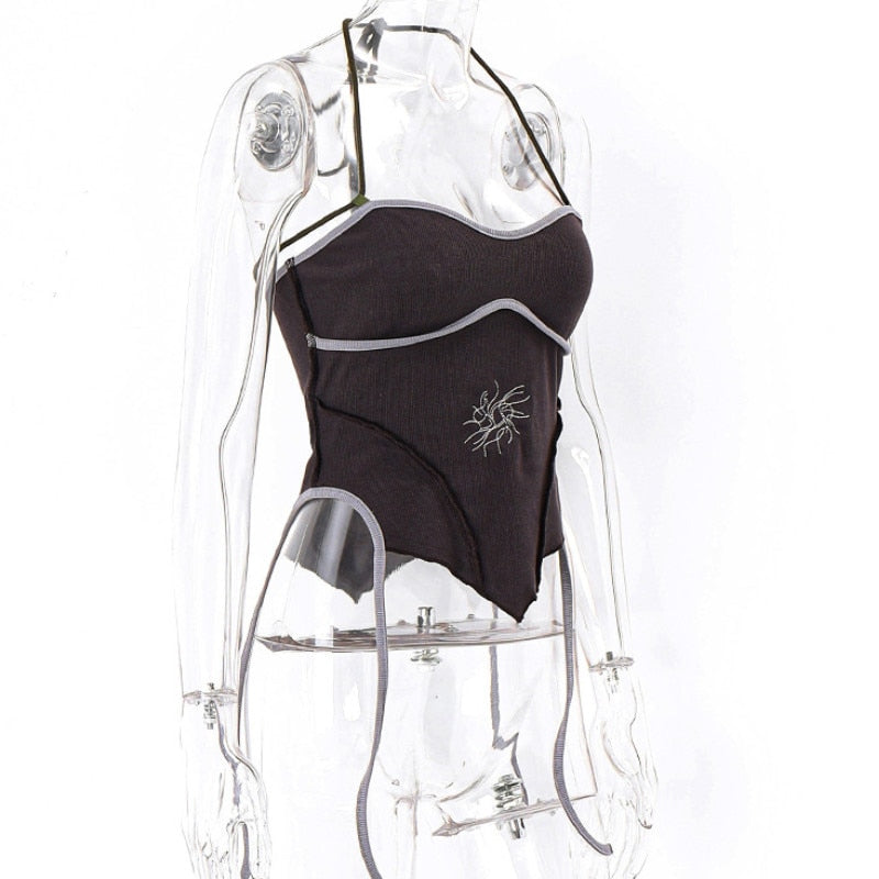 Yipinpay Women y2k Clothes Camisole Crop Tops Summer 2023 T-shirt Halter Open Back Sleeveless Slim Vest Vintage Aesthetic Tees Streetwear