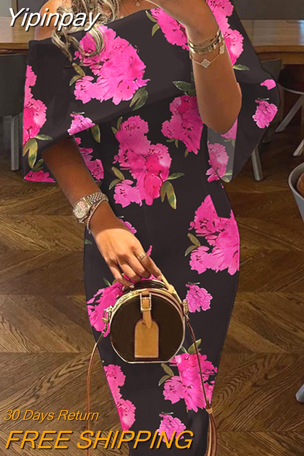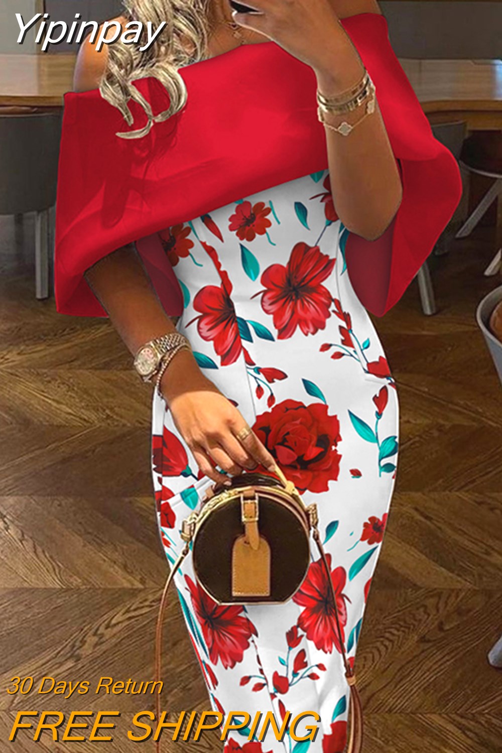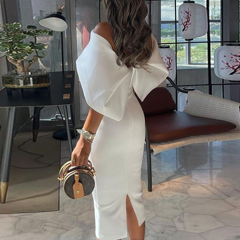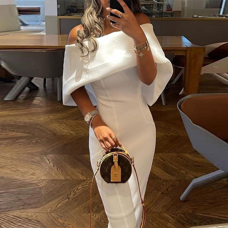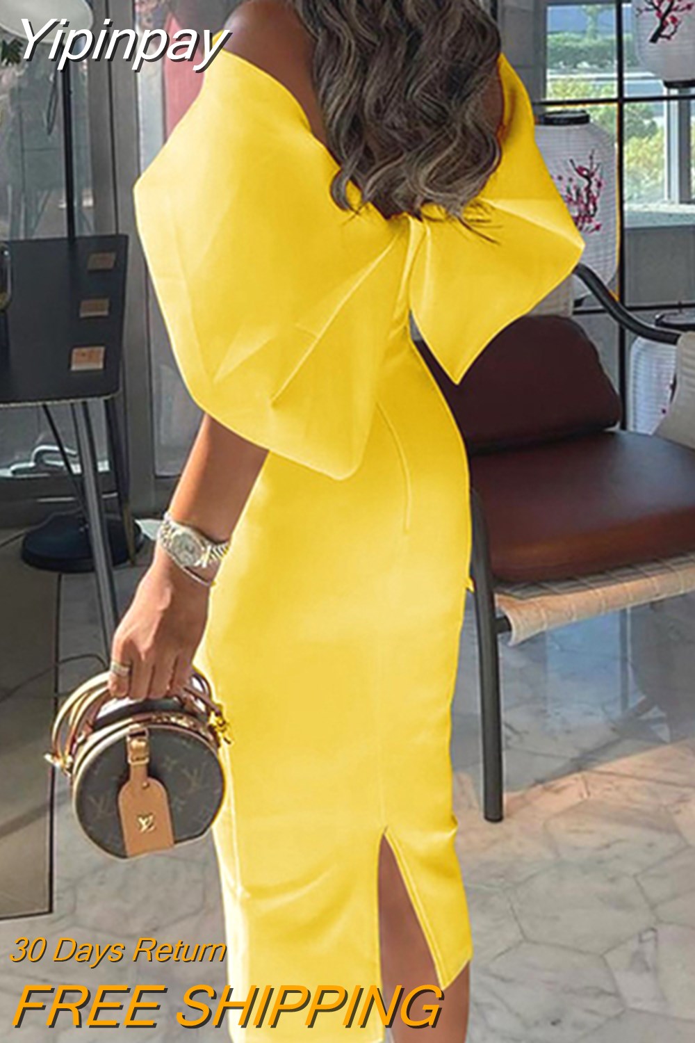 Yipinpay Women's Casual Solid Color Long Dress Elegant Off Shoulder Cape Design Skinny Party Dress Autumn Fashion Back Bow Dress Vestido