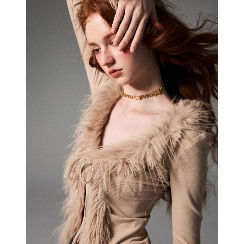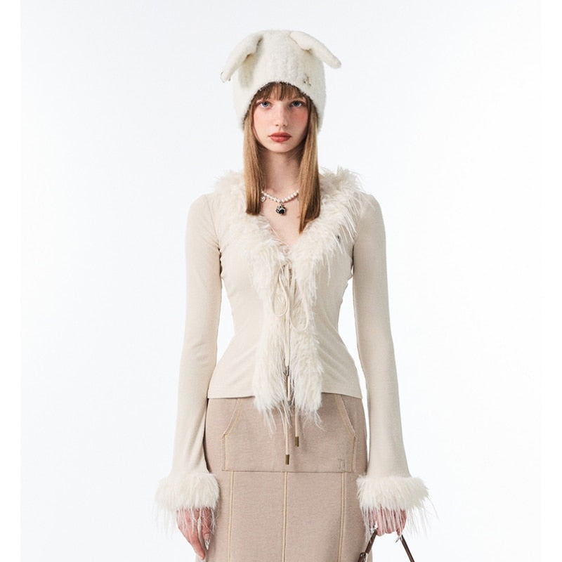 yipinpay Women's Clothes Khaki Cardigan Sweater V-neck Tassels Splicing Outerwear Fashion Vintage Leisure Winter Knitting Drawstring Coat