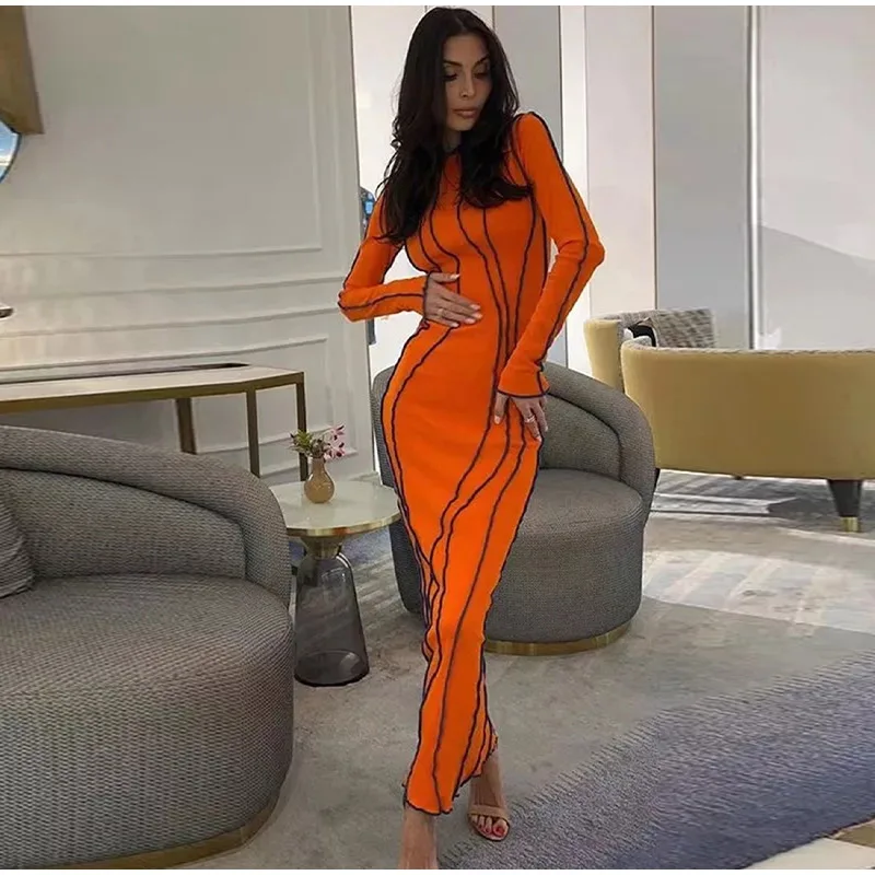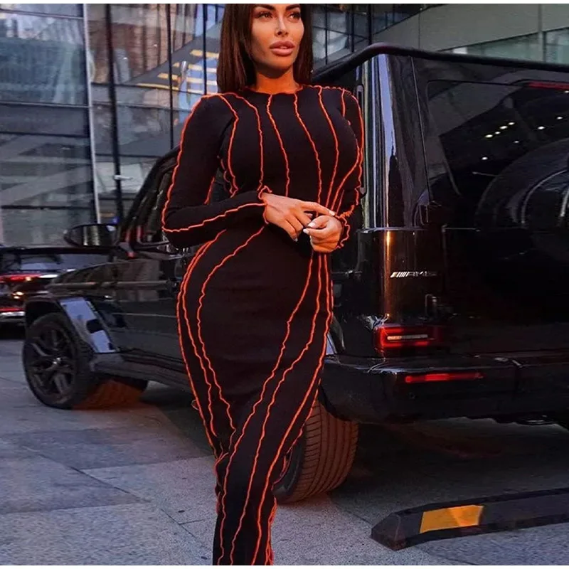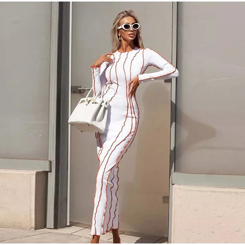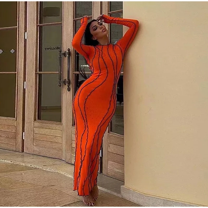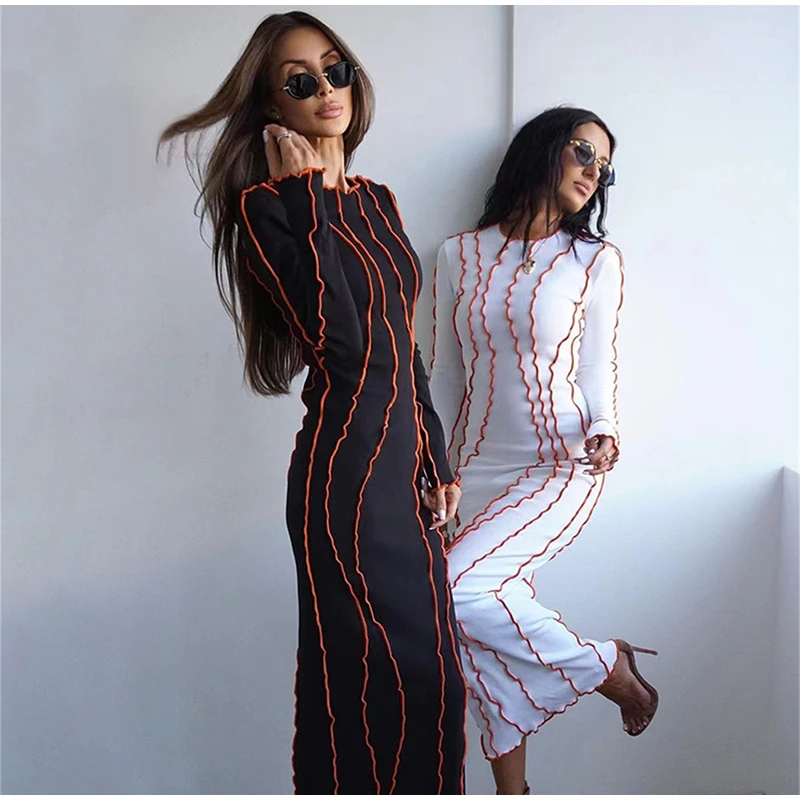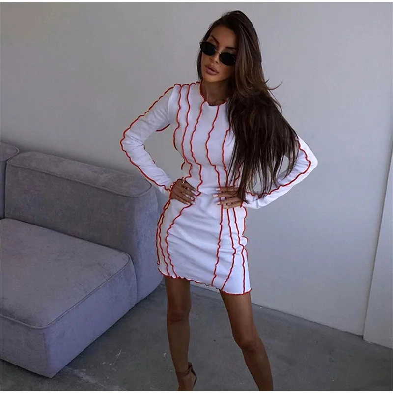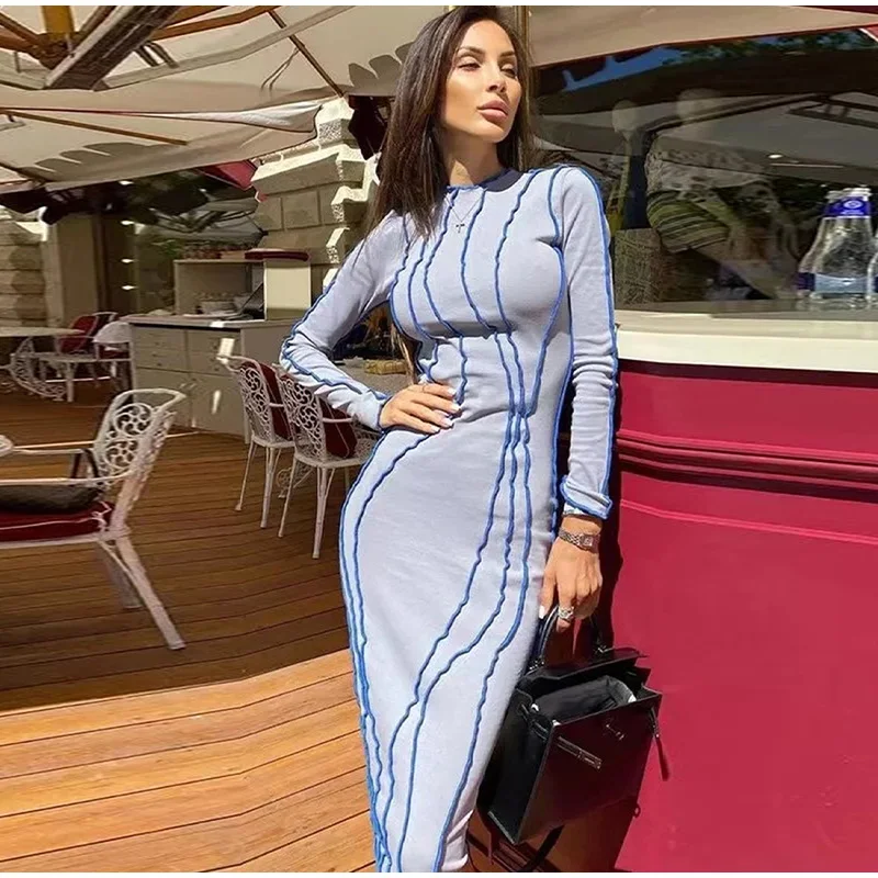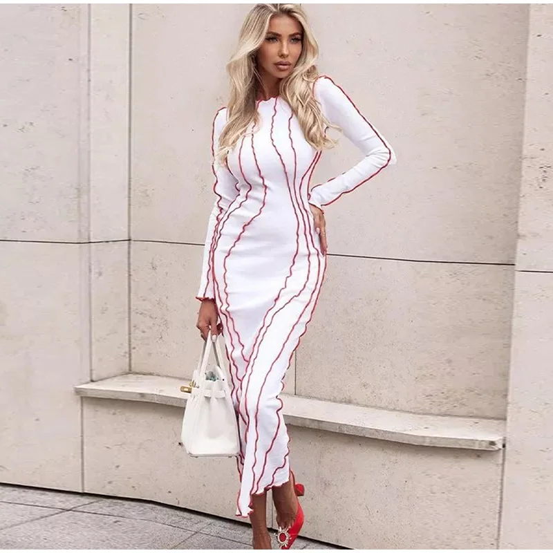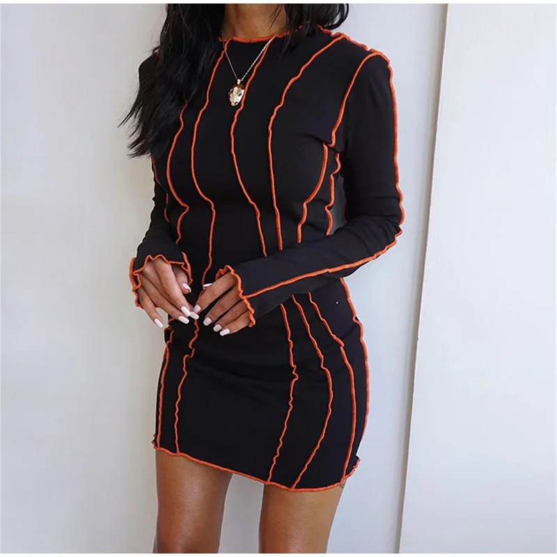 Yipinpay Women's Convex Strip Flare Sleeve Slim Midi Dress 2023 Spring O Neck Party Club Mini Dresses Female Office Solid Robe Outifits
