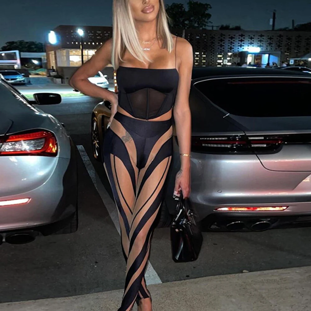 Yipinpay Women's Crop Top Camisole with Perspective Mesh Patchwork Stitching Sexy Style Irregular Tailoring Summer Clothing Tops Y2k