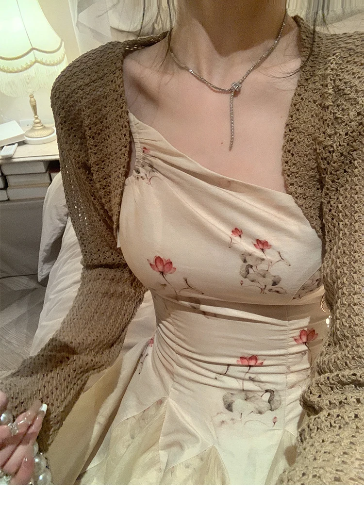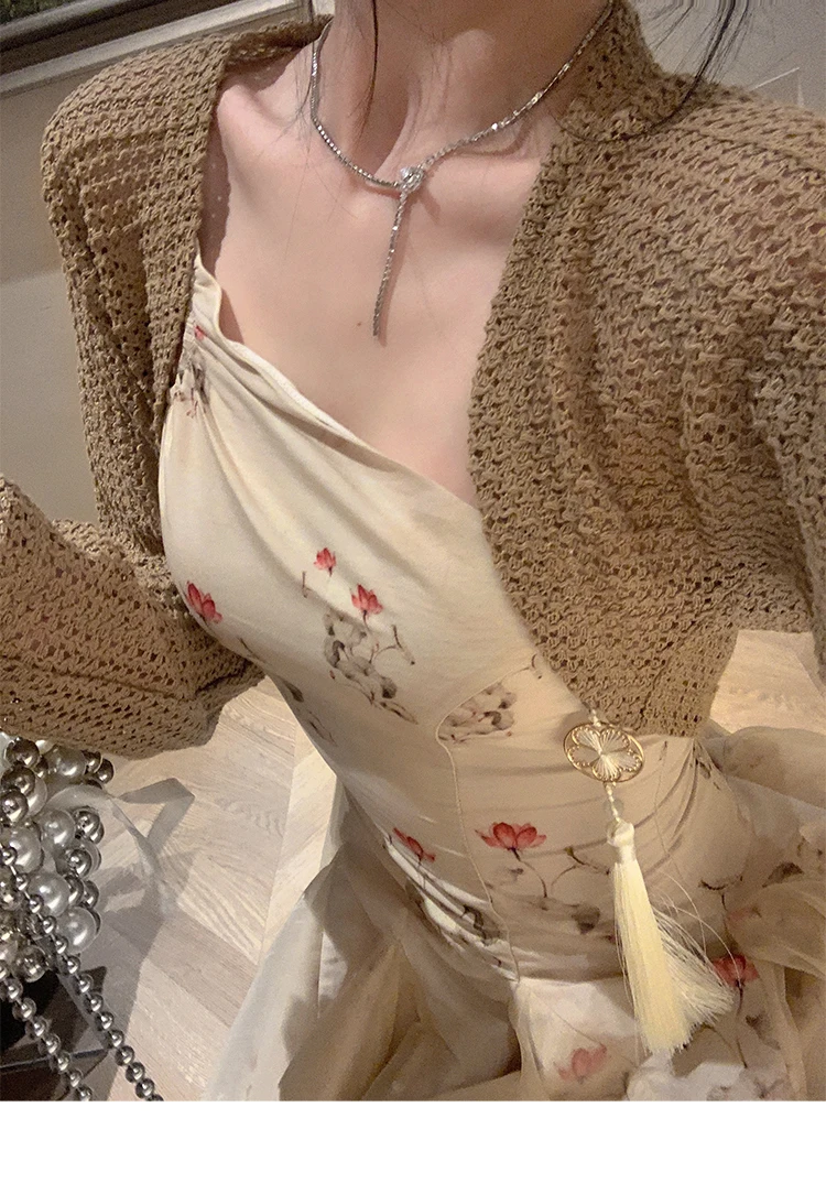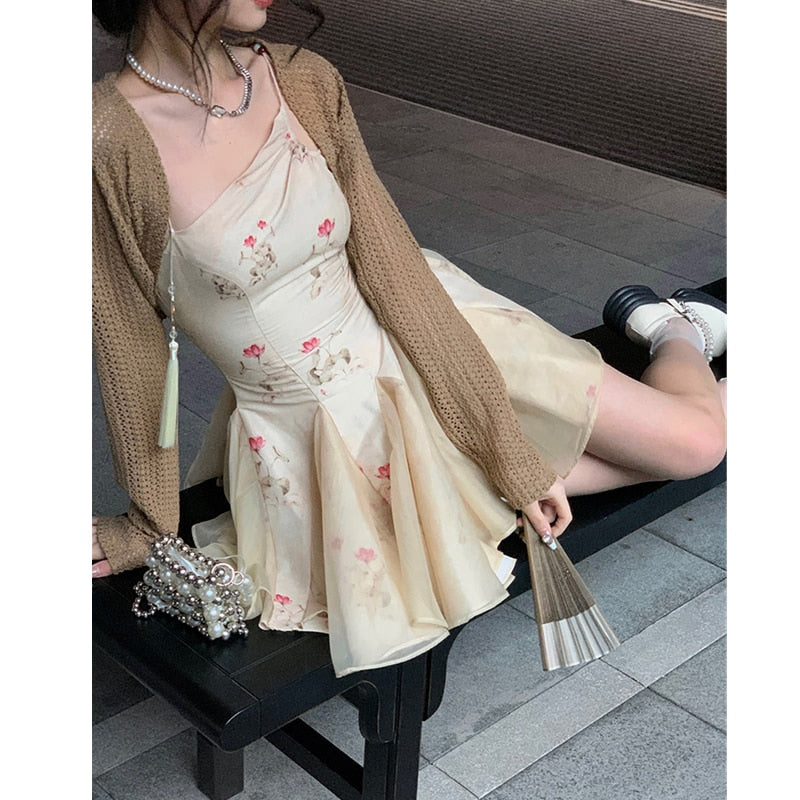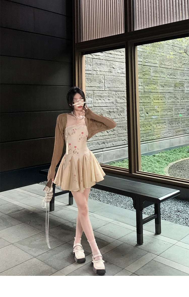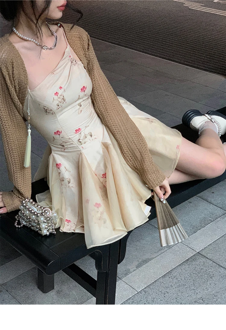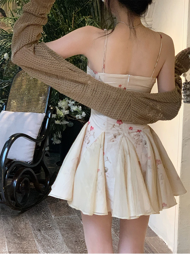yipinpay Women's Dress Apricot Short Skirt Summer New Chinese Style Fashion Suspender Dress Women's Design Dress Ball Gown Short Skirt