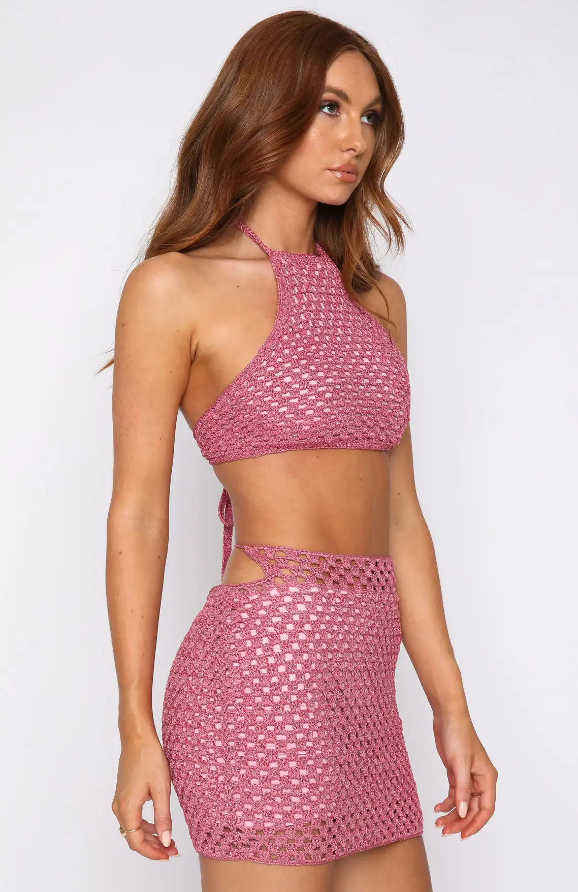 Yipinpay Womens Knitted Skirt Suit Solid Color Sleeveless Tie Back Halter Crop Tops With Summer Mini Skirt Club Street Style S M L