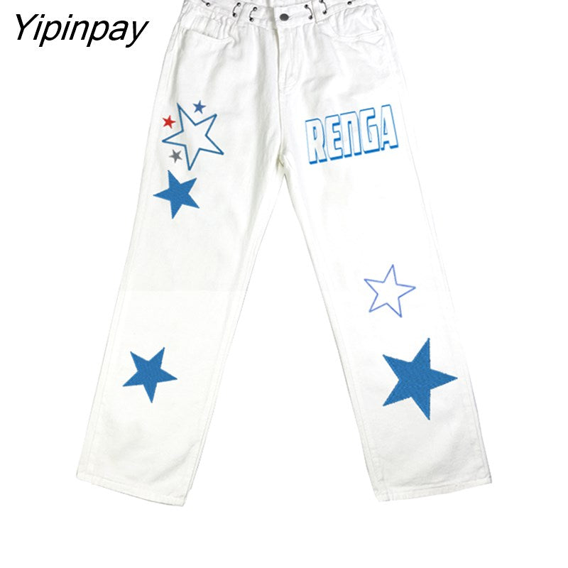 Yipinpay Women's Pants Trousers Oversize Y2k Harajuku Star Print High Waist Streetwear Jeans Korean Fashion Aesthetic Female Clothing