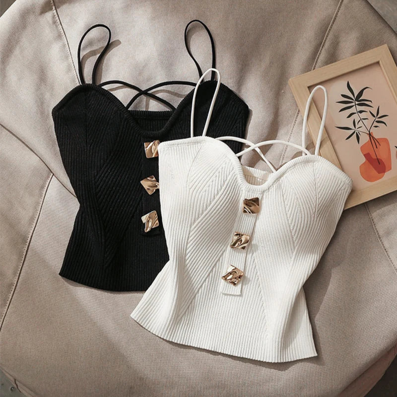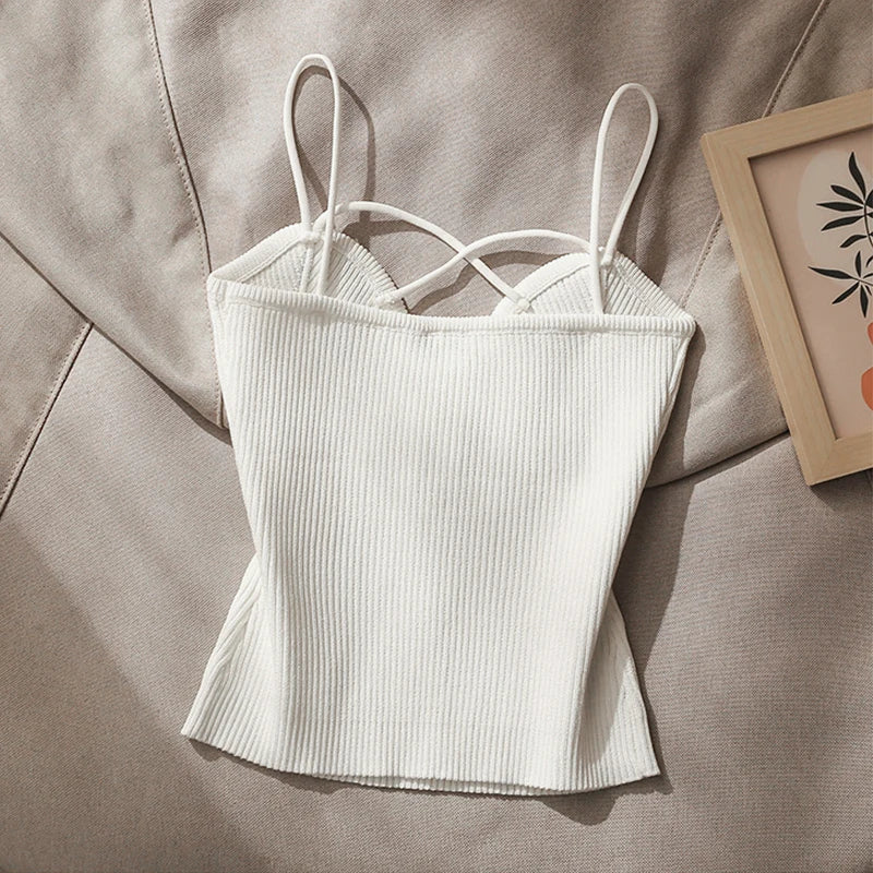 Yipinpay Women's Sexy Knitted Tops Summer Vest French Style Cross-knit Suspender Female White Black Camisole Tank Top Spaghetti Strap