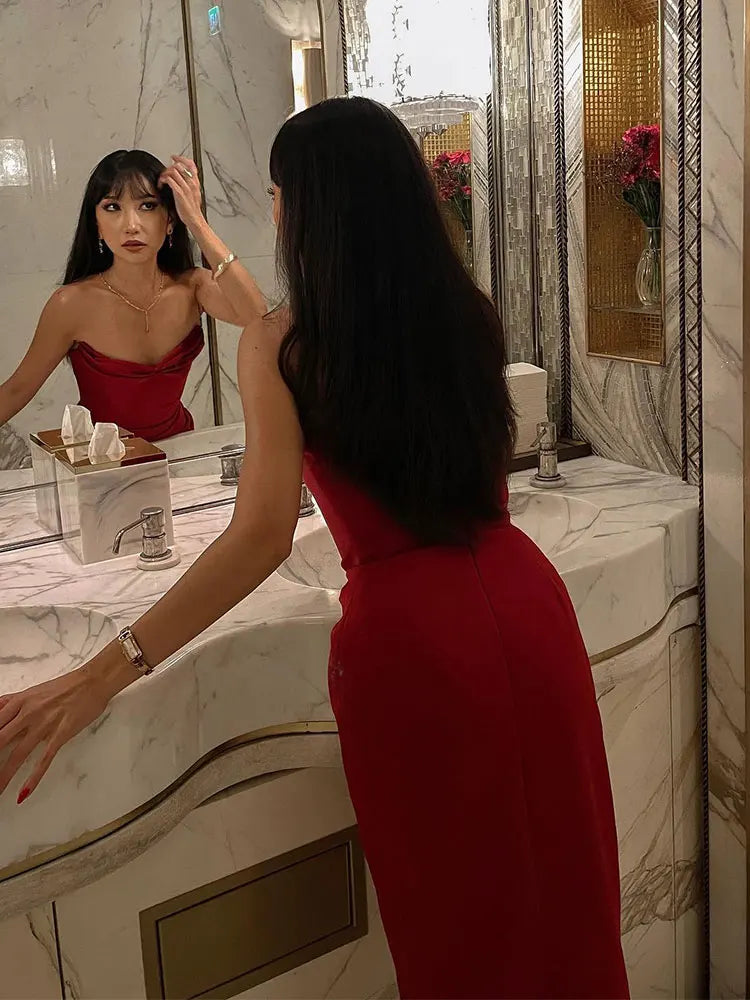 Yipinpay Women's Sexy Strapless Backless Dresses Fashion Off Shoulder Slim Long Dress Casual Night Party Outfit Streetwear Robe
