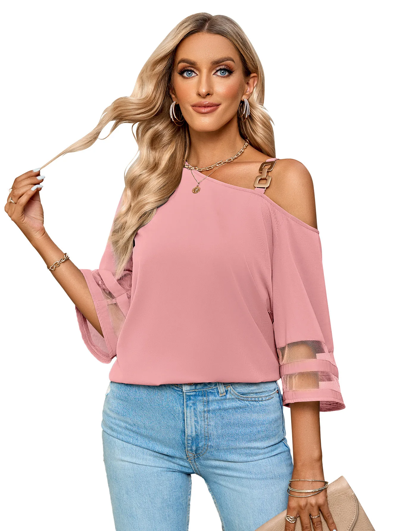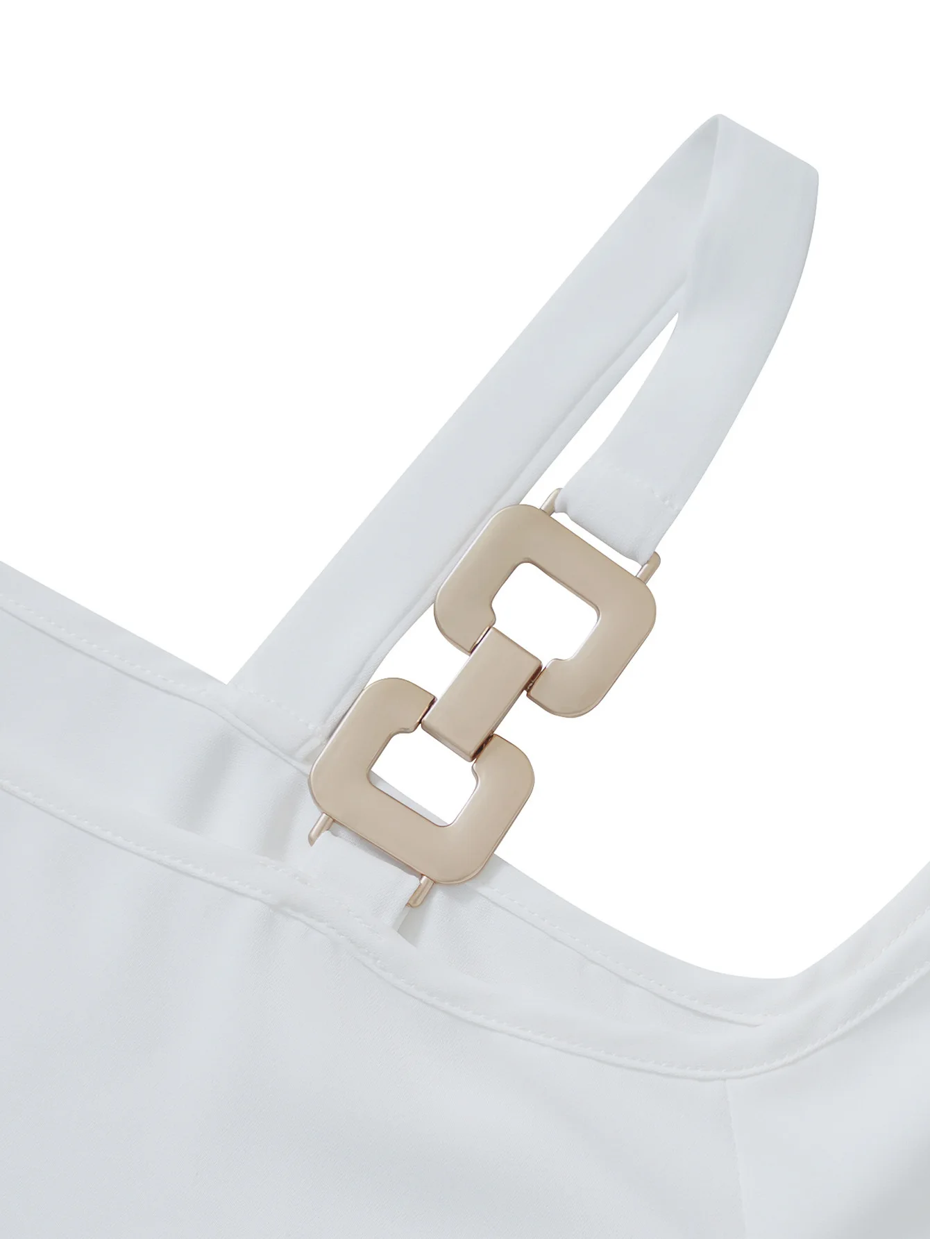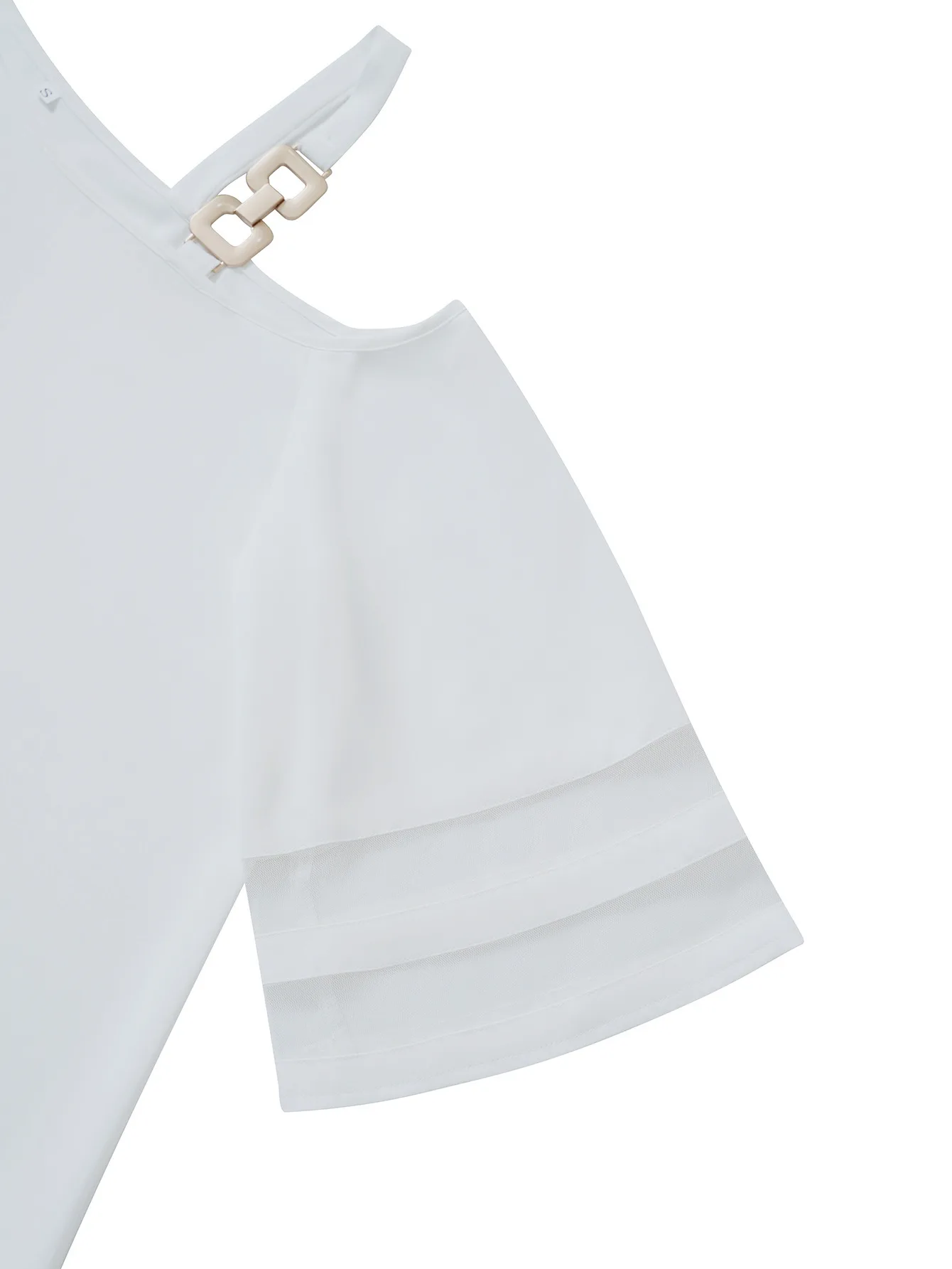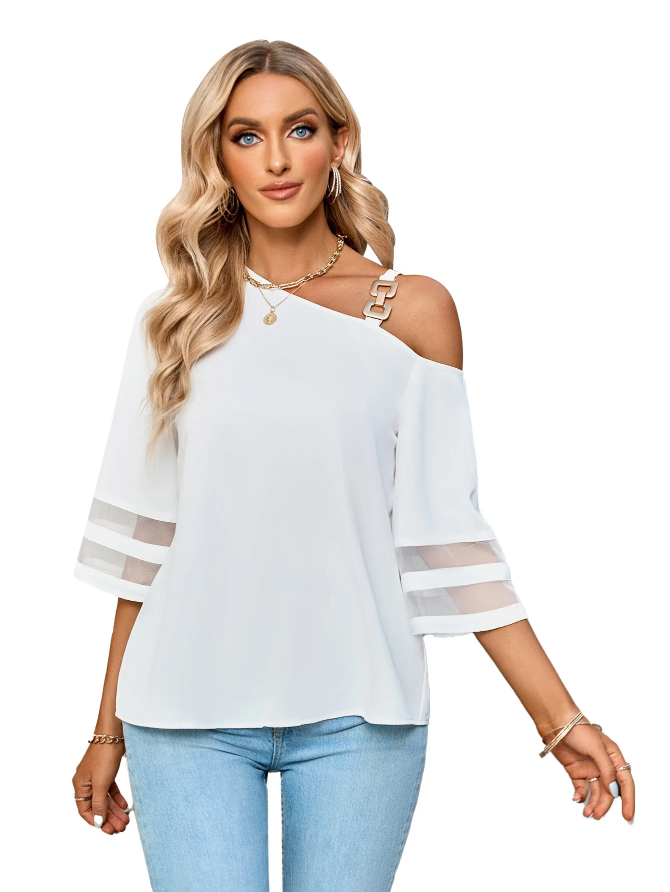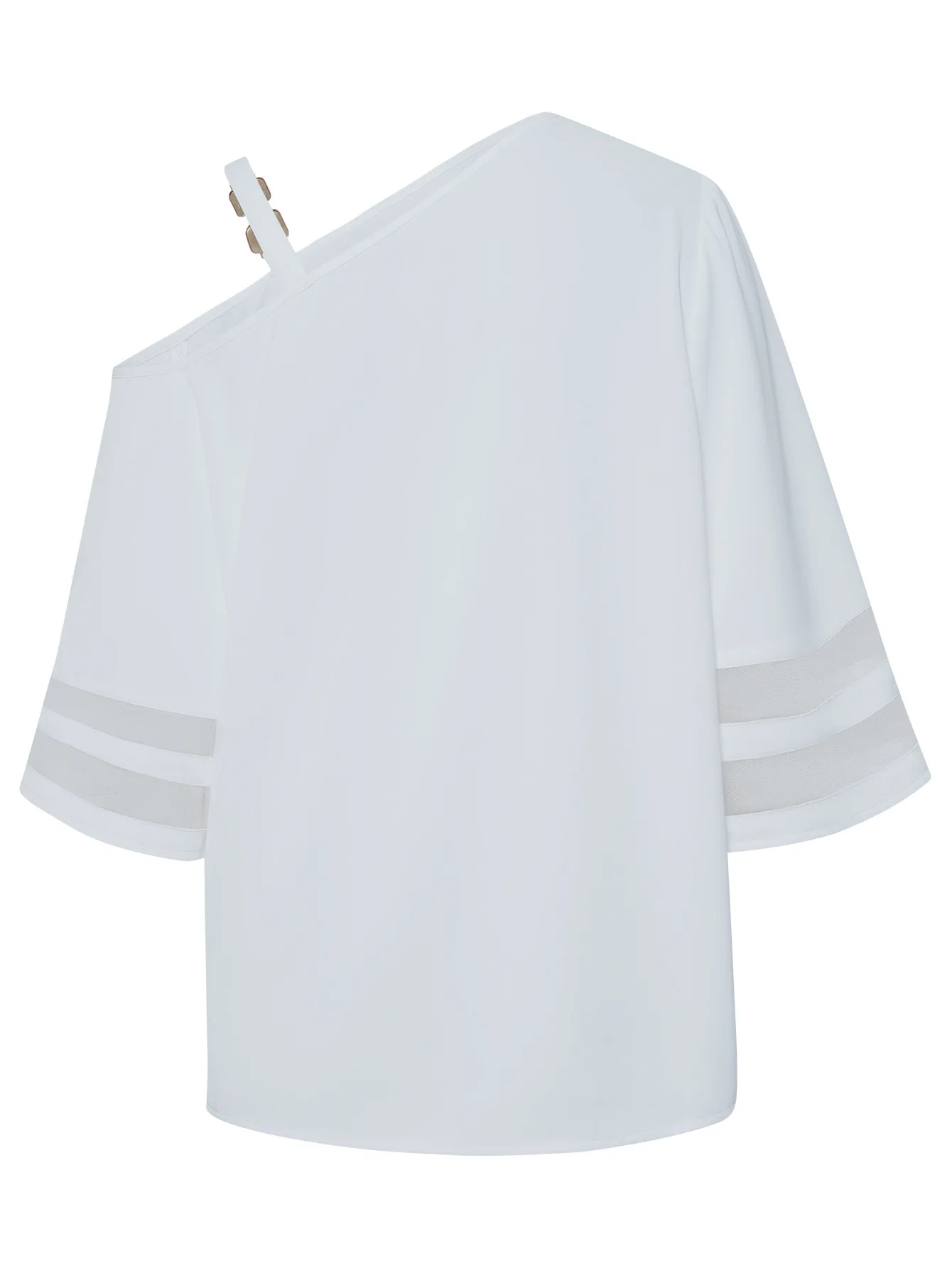Yipinpay Women's Shirt 2024 Summer New Fashion Casual Metal Buckle Single Shoulder White Shirt Women Loose Blouse Vintage Female Clothing