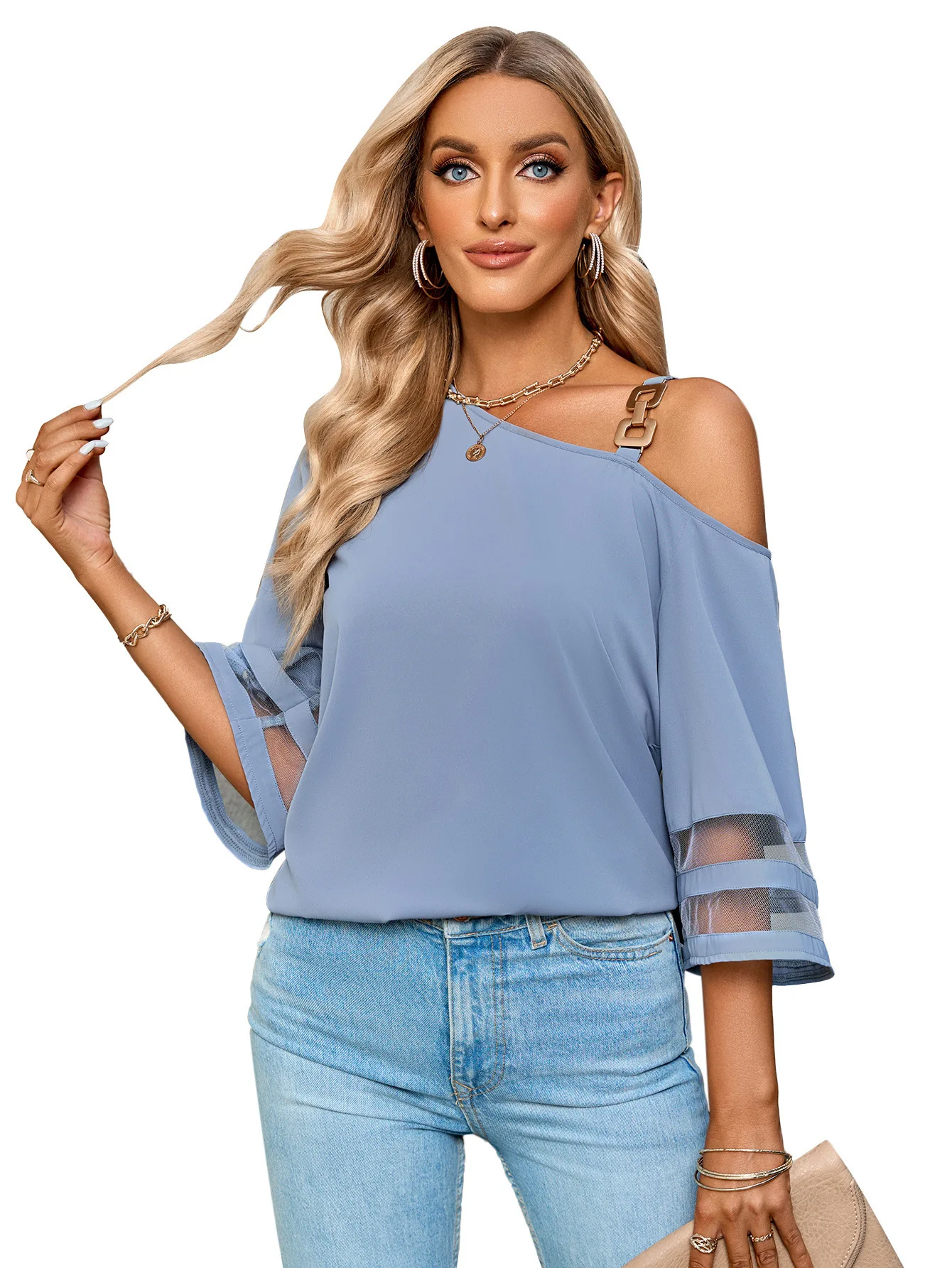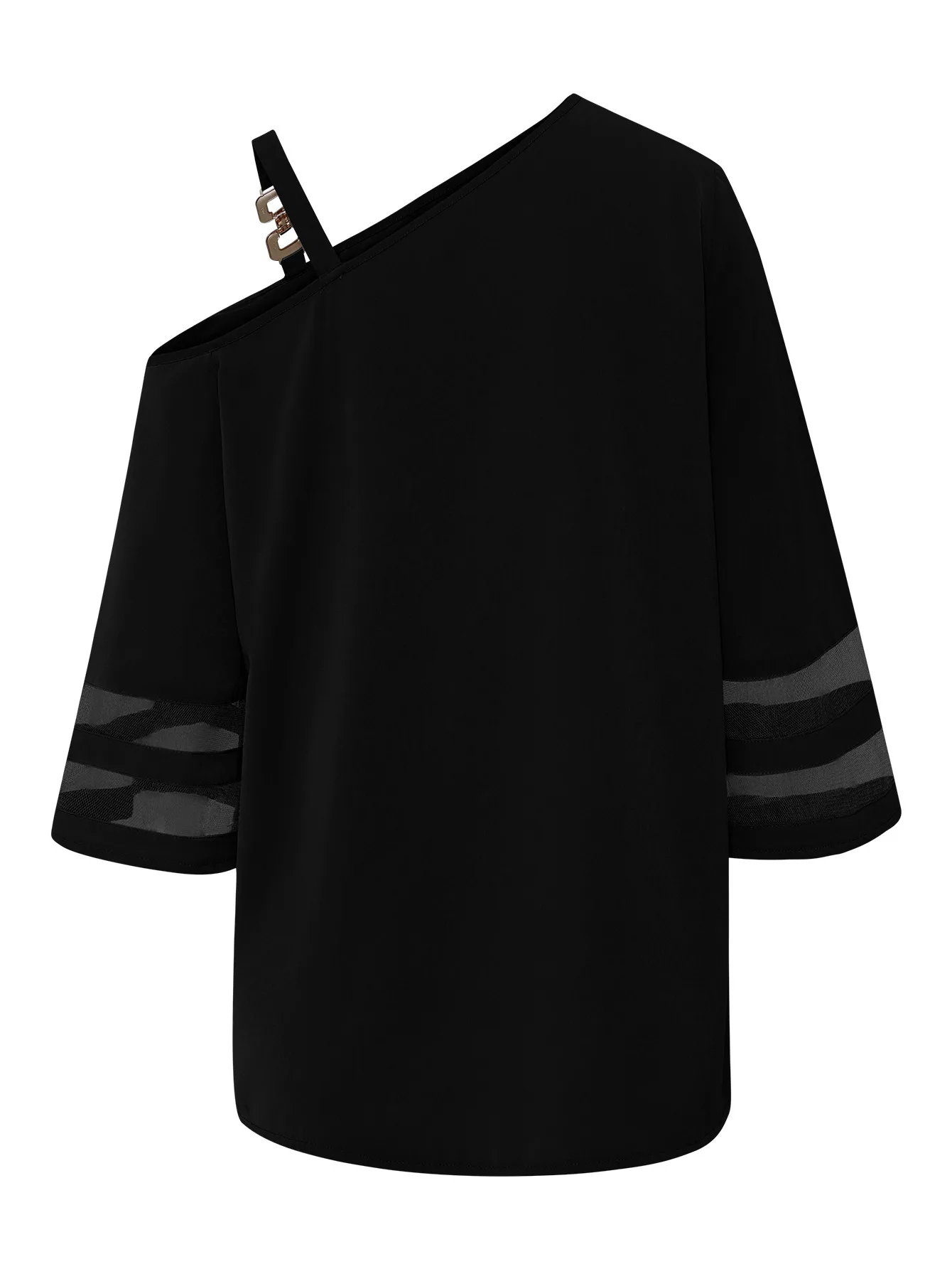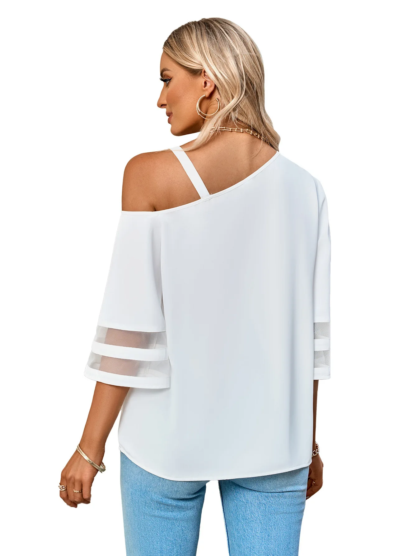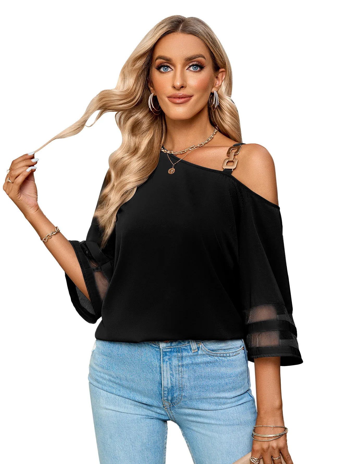 Yipinpay Women's Shirt 2024 Summer New Fashion Casual Metal Buckle Single Shoulder White Shirt Women Loose Blouse Vintage Female Clothing