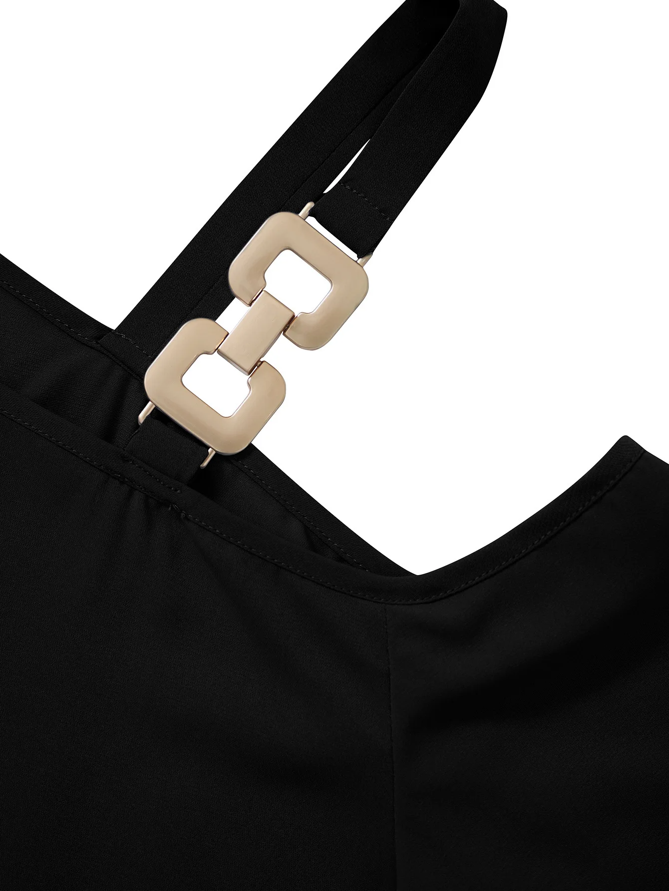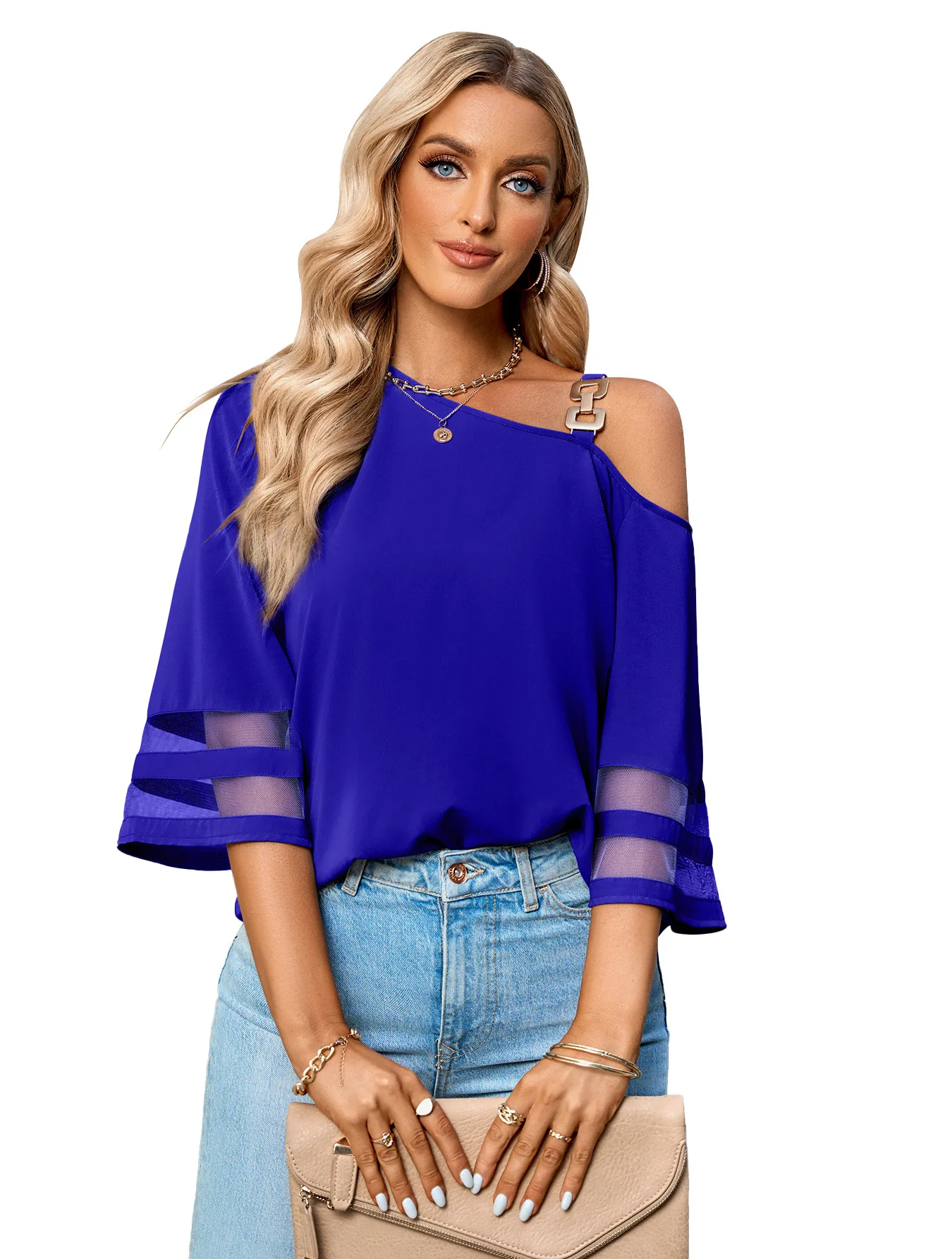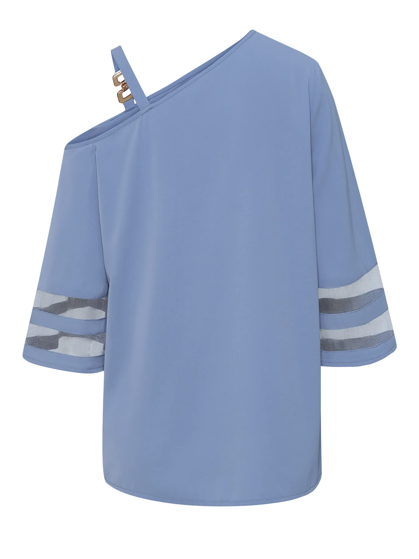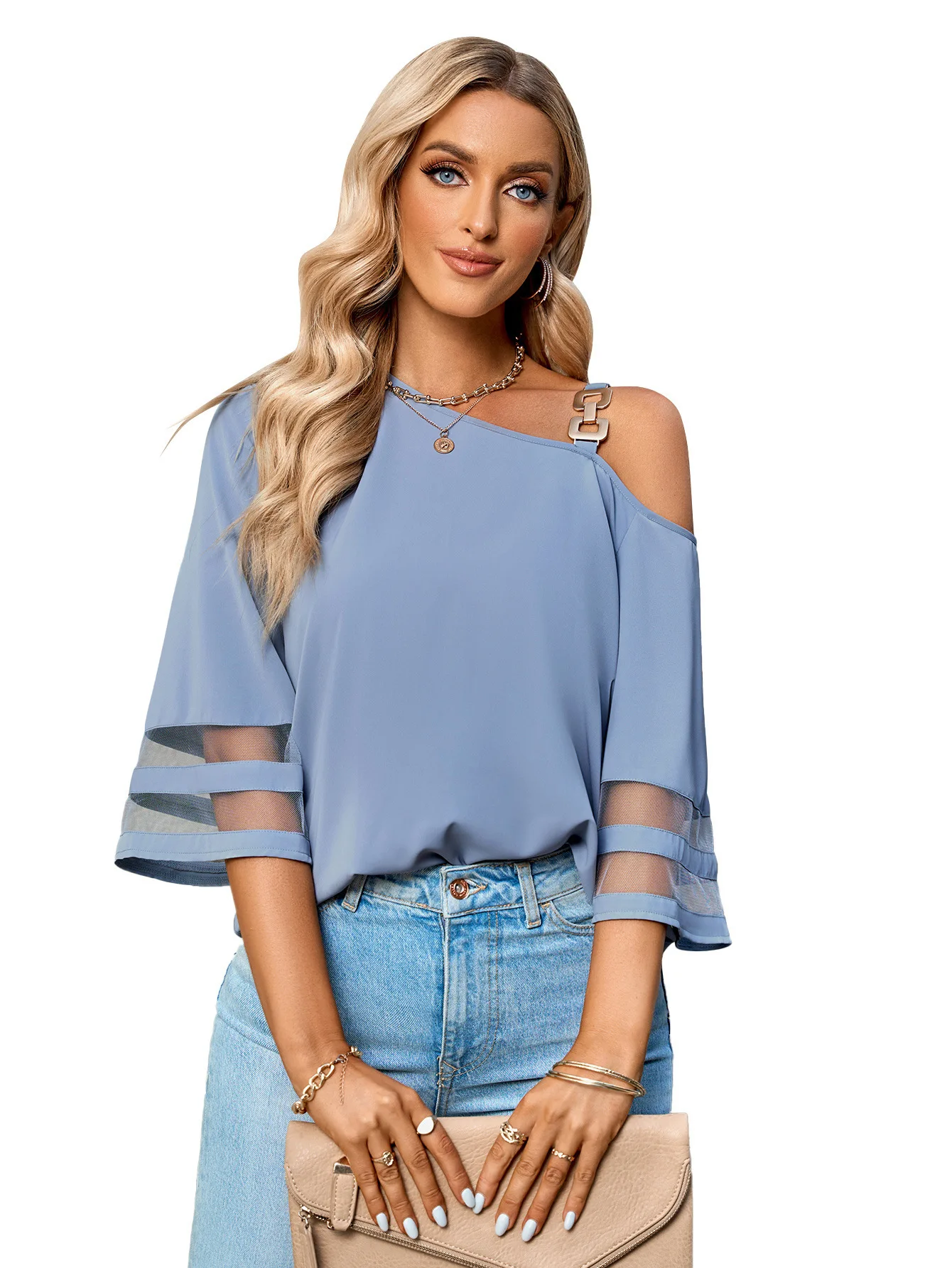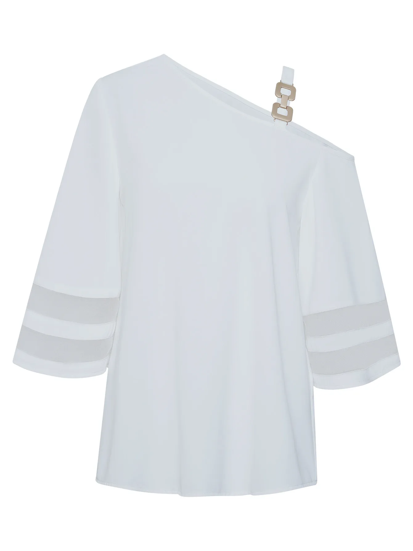 Yipinpay Women's Shirt 2024 Summer New Fashion Casual Metal Buckle Single Shoulder White Shirt Women Loose Blouse Vintage Female Clothing