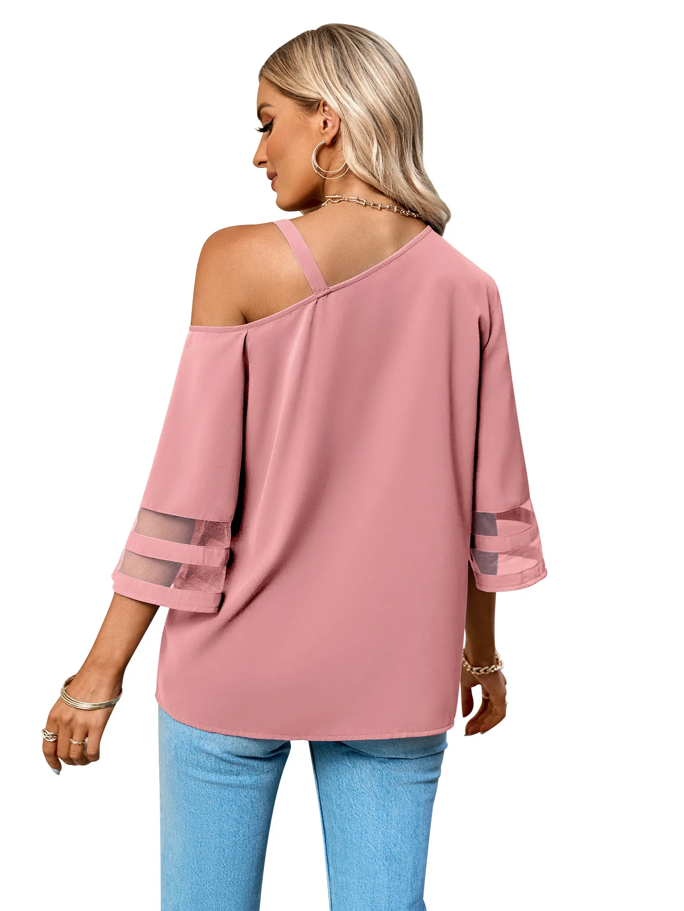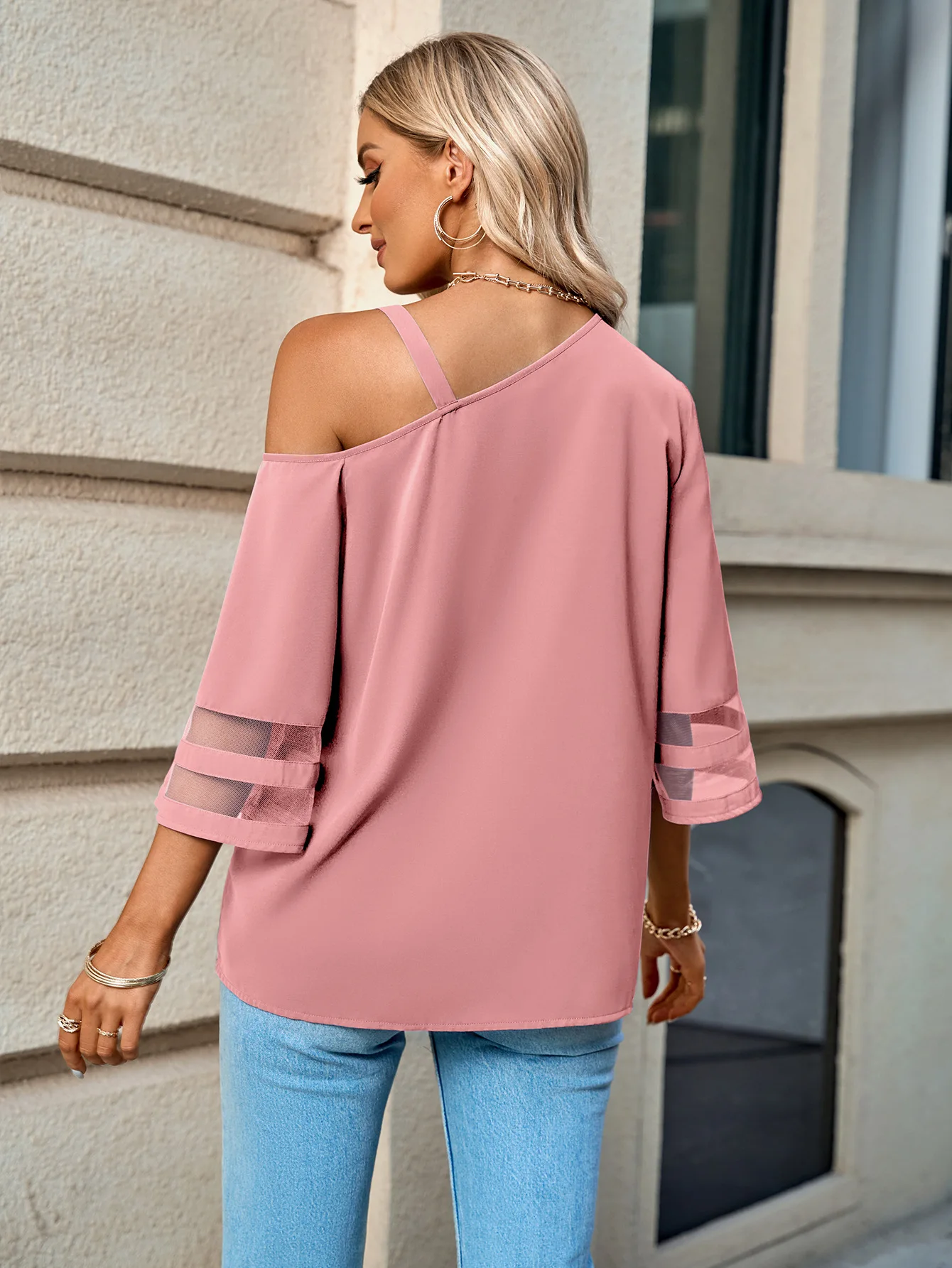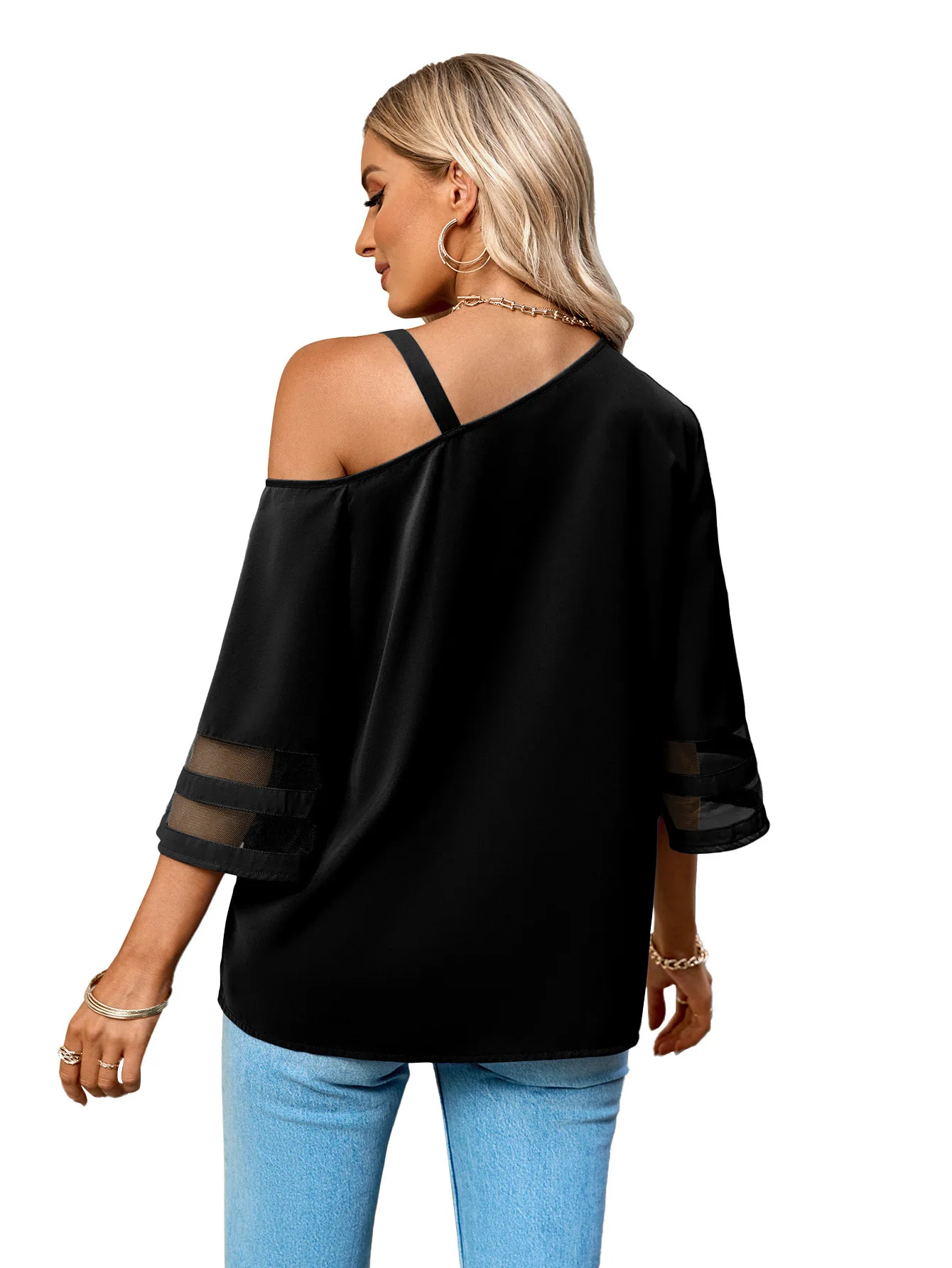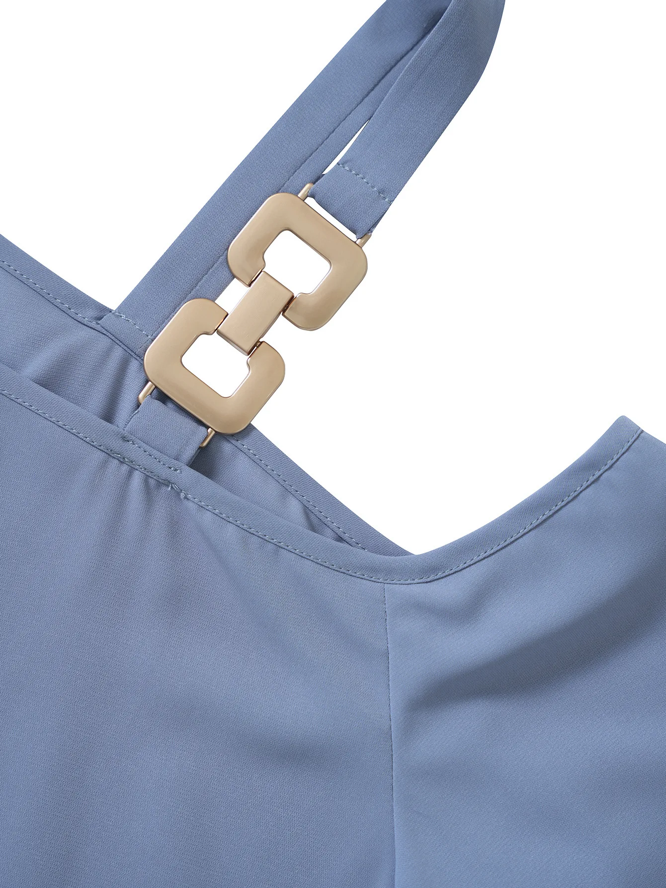 Yipinpay Women's Shirt 2024 Summer New Fashion Casual Metal Buckle Single Shoulder White Shirt Women Loose Blouse Vintage Female Clothing