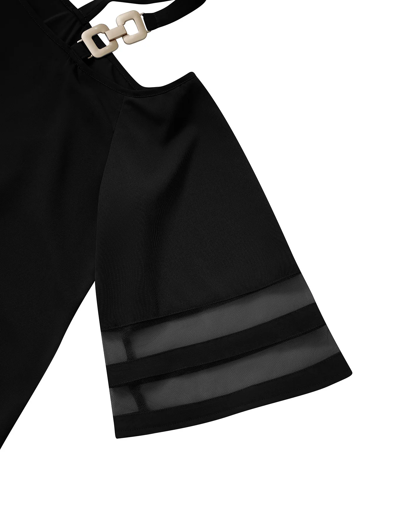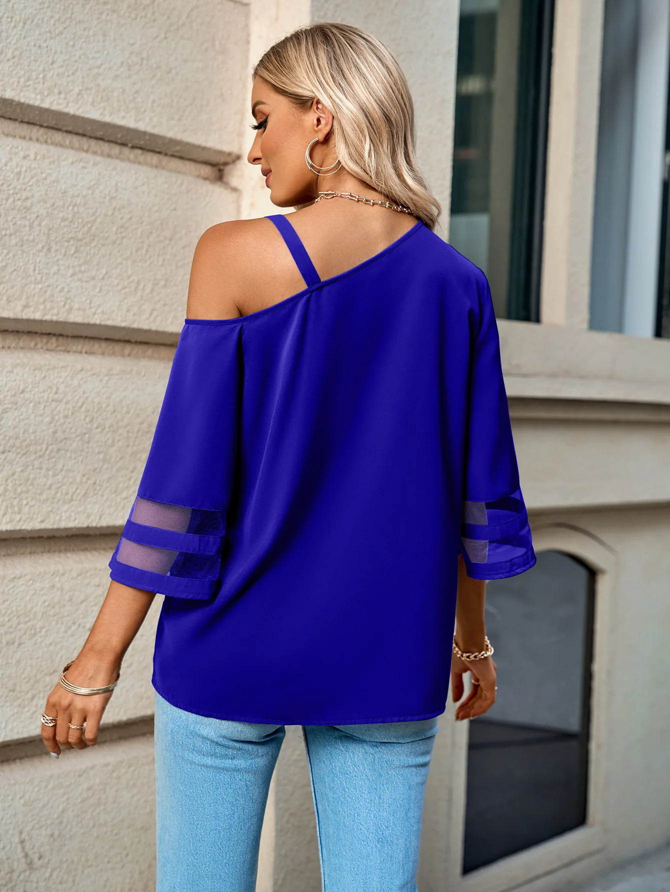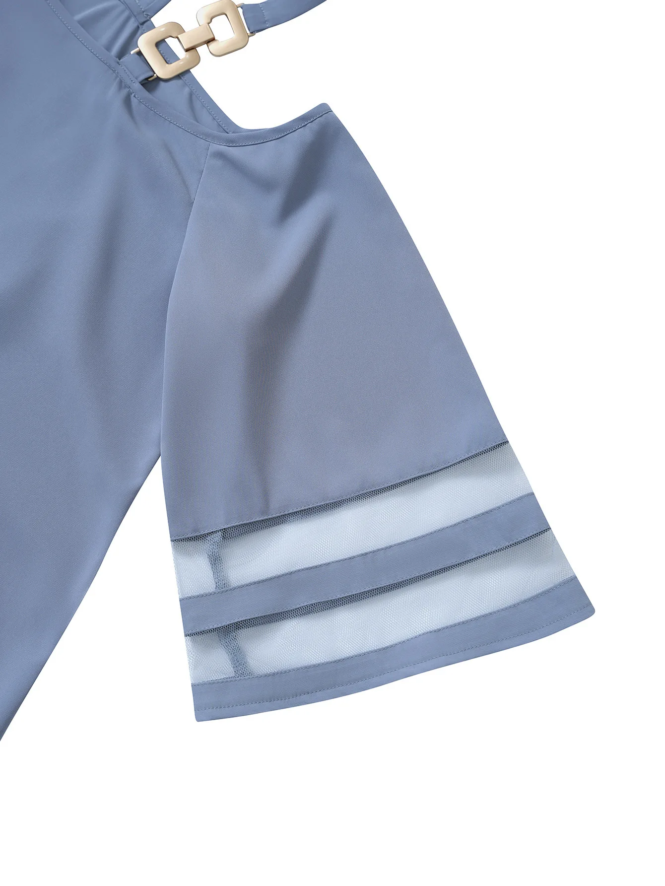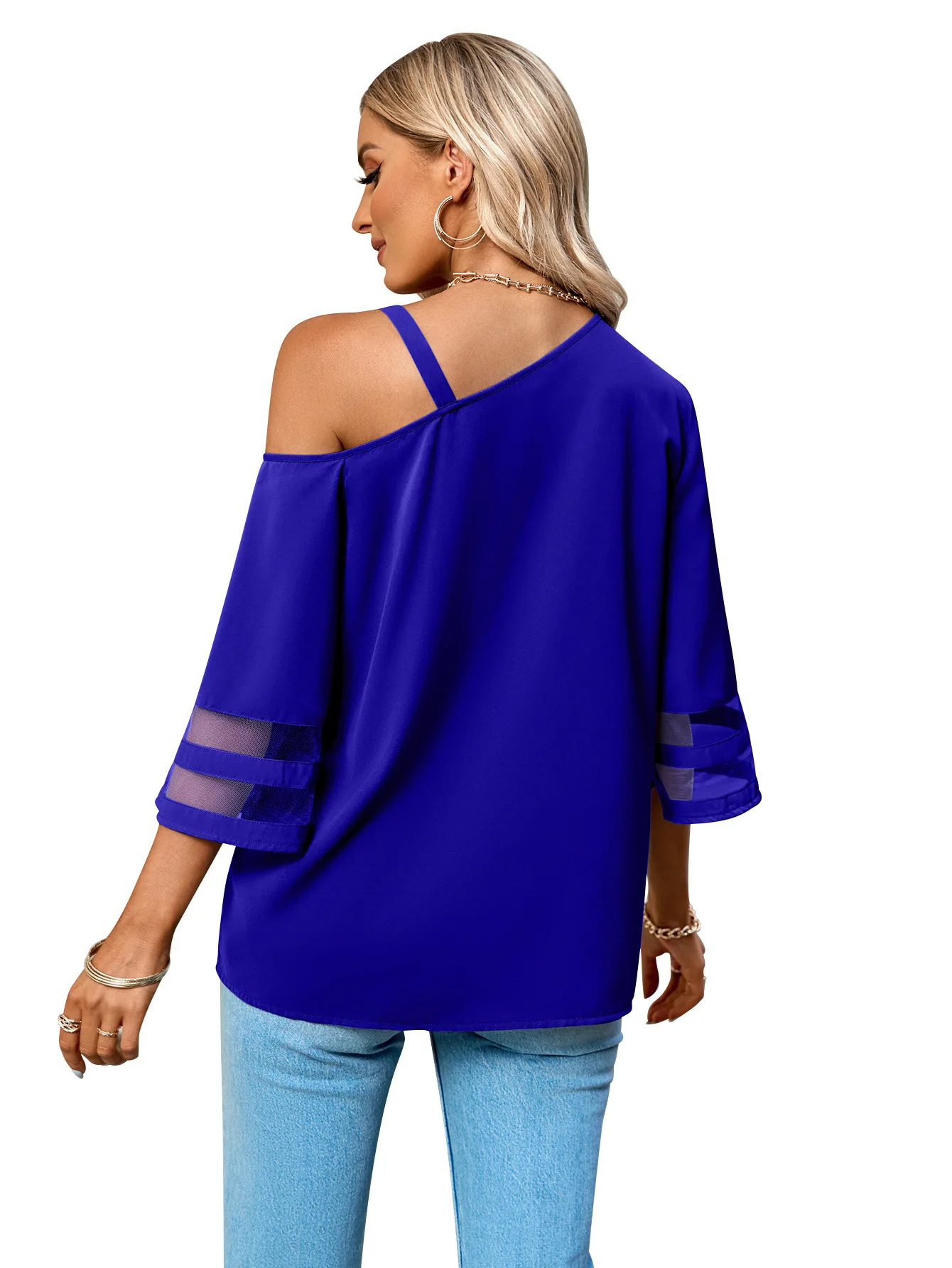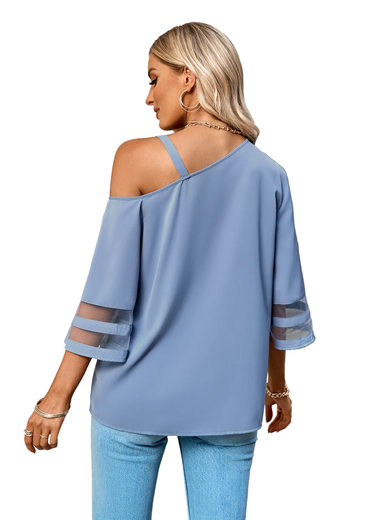 Yipinpay Women's Shirt 2024 Summer New Fashion Casual Metal Buckle Single Shoulder White Shirt Women Loose Blouse Vintage Female Clothing
