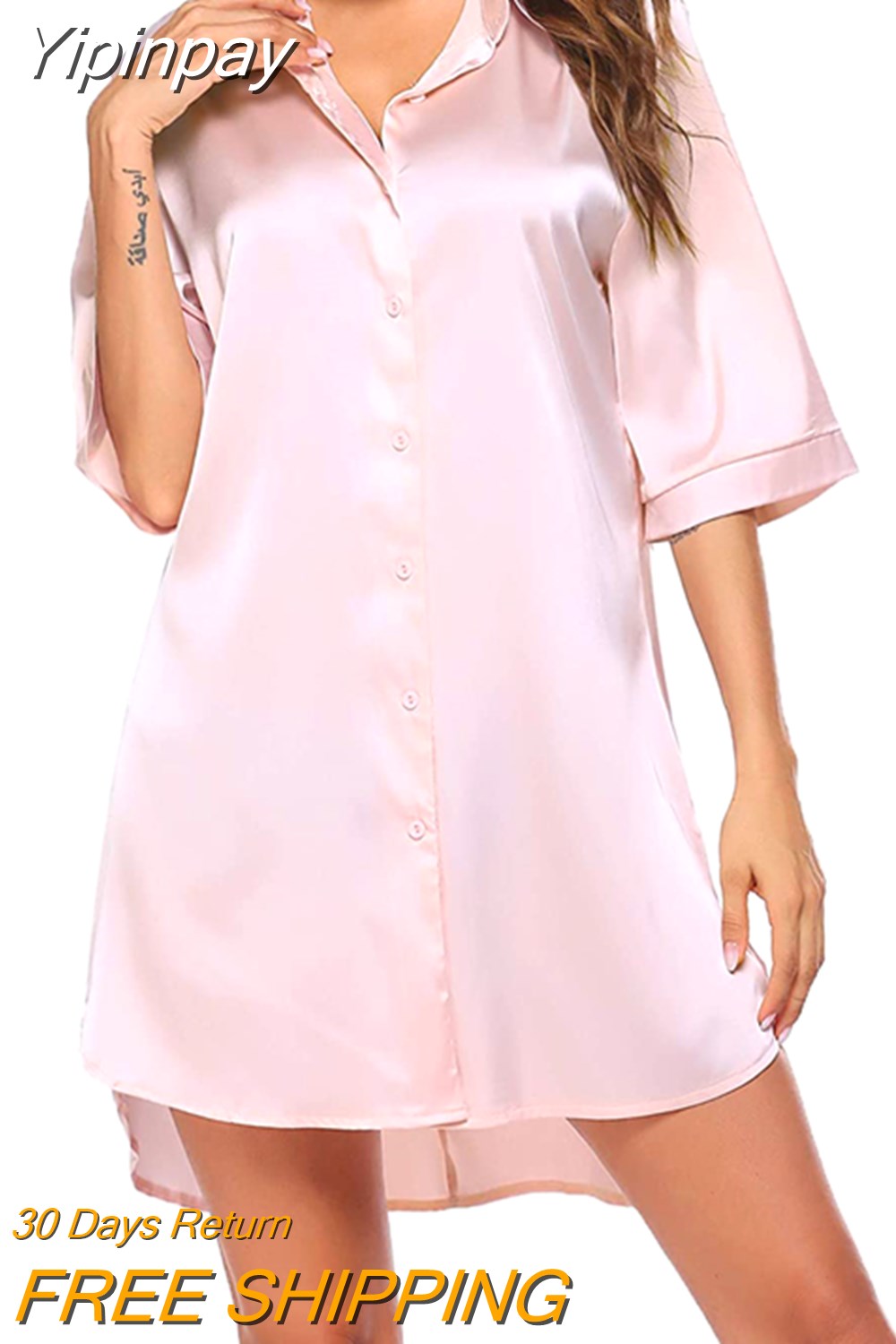 Yipinpay Womens Sleep Tops Underwear Solid Color Sleeping Shirt Half Sleeve Single Breasted Loose Nightshirt for Home Wear Lounge 2023