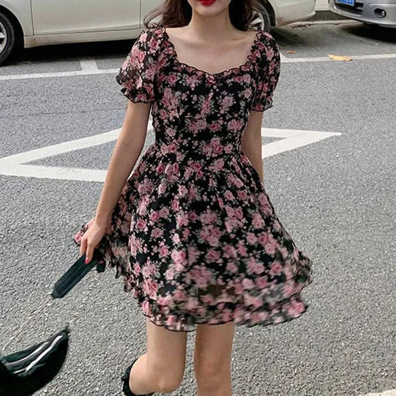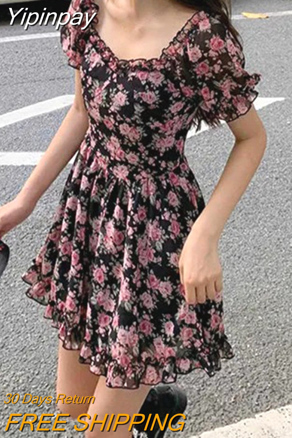 Yipinpay Women's Summer Dress, Puff Short Sleeve Square Neck High Waist A-Line Mini Sweet Dresses
