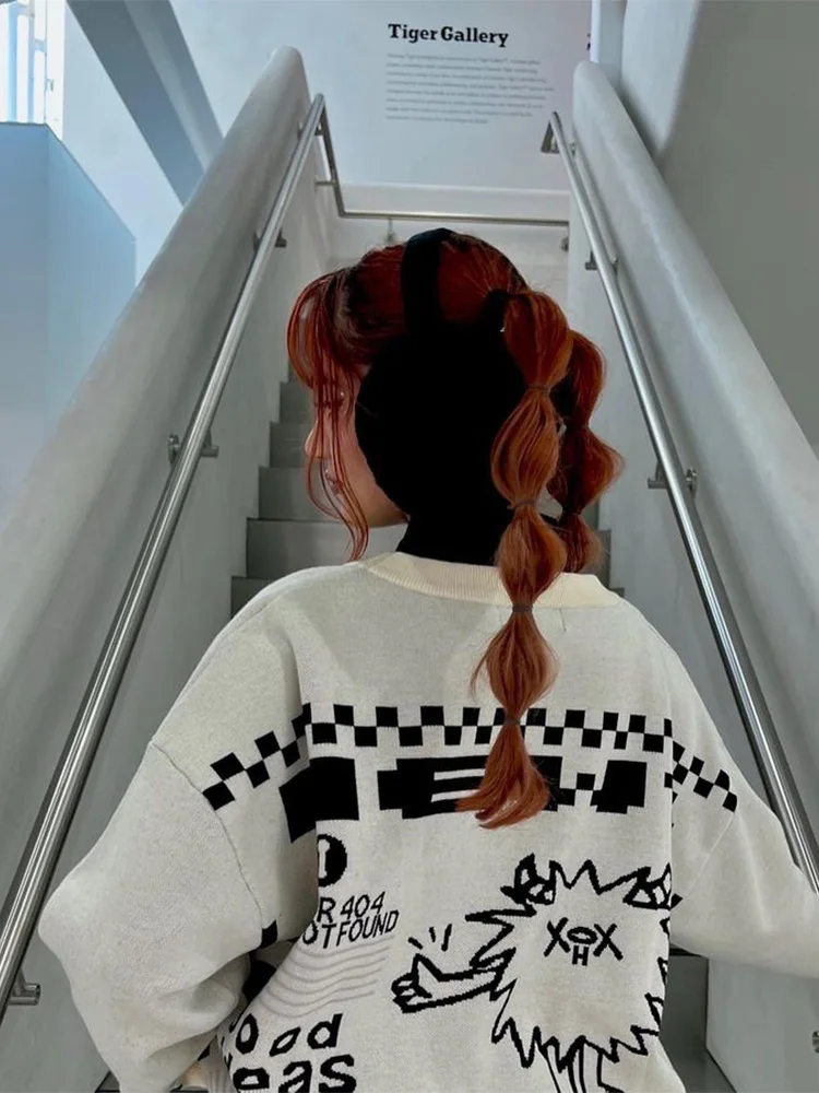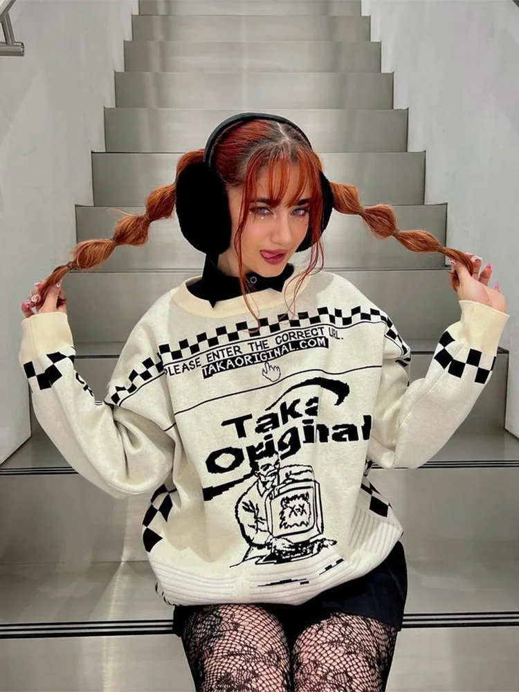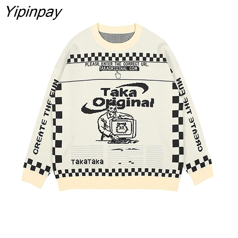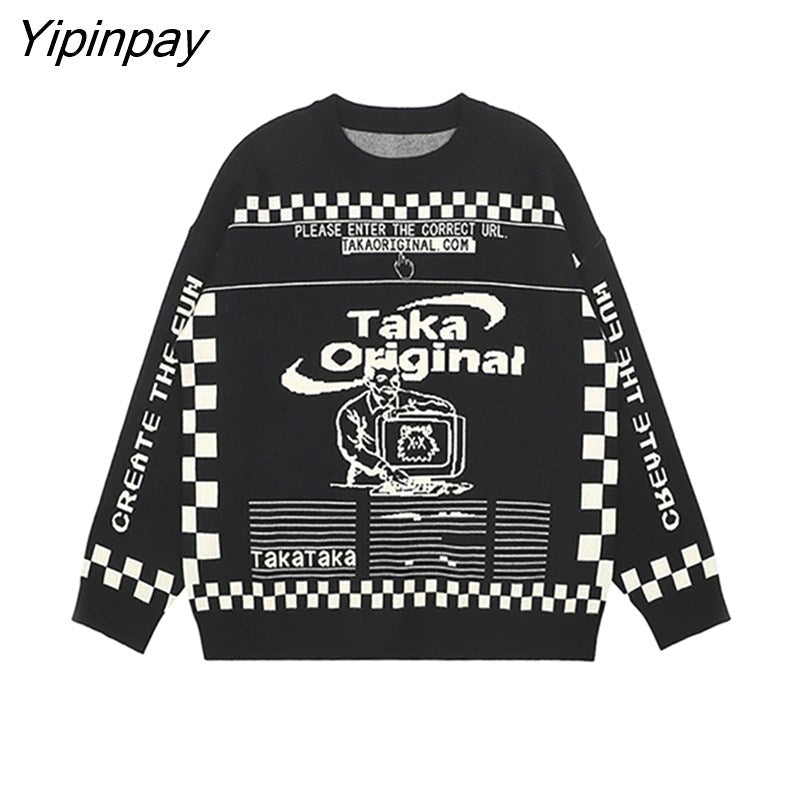 Yipinpay Women's Sweater Oversized Y2k Aesthetics Tops Knit Pullover Jumper Graphic Winter Streetwear Korean Fashion Long Sleeve Clothes