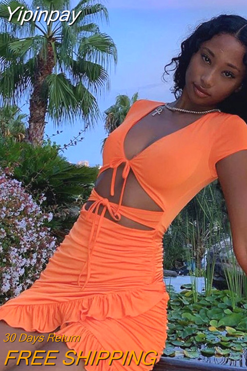 Yipinpay Womens V Neck Wrap Short Mini Dress Ladies Bodycon Summer Hollow Out Sexy Fashion Evening Party Dress