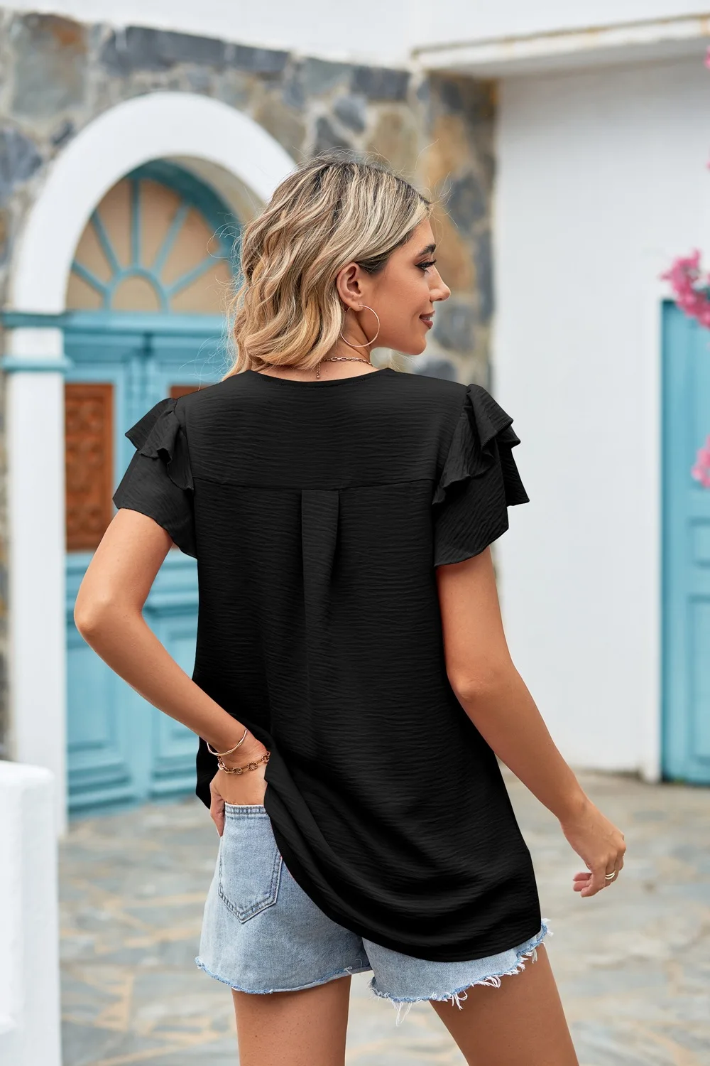 Yipinpay Women's White Blouses Summer V-neck Ruffles Short-sleeve Loose Casual Shirt Women Vintage Pullover Top Streetwear Female Clothes