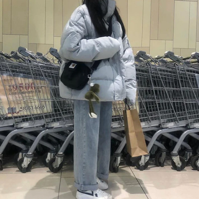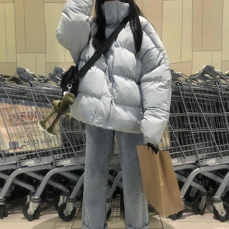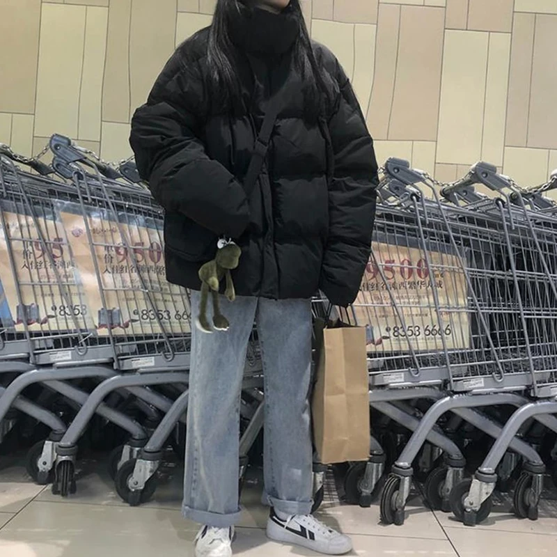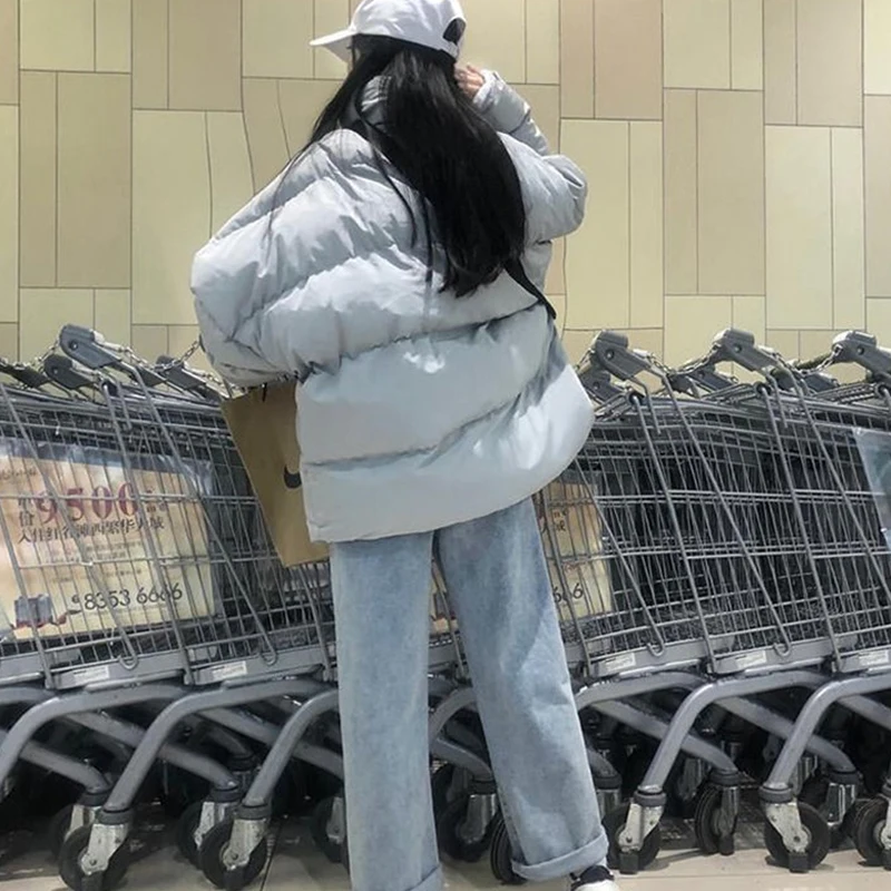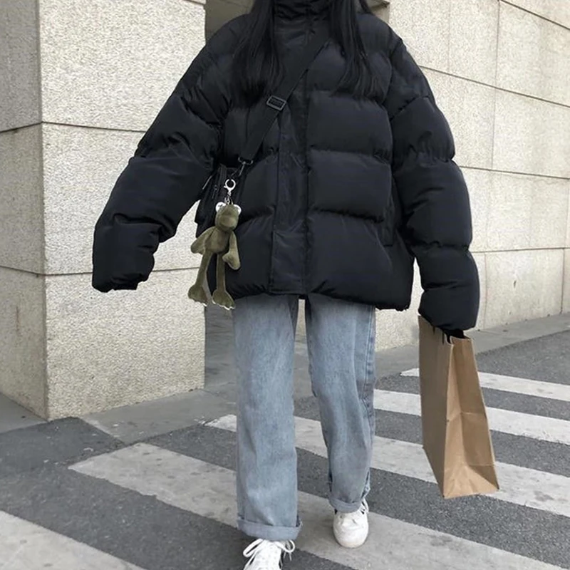 Yipinpay Women's Winter Jacket Oversize Down Coat Cardigan Cotton Zipper Loose Casual Vintage Long Sleeve Tops Parka Streetwear Clothing