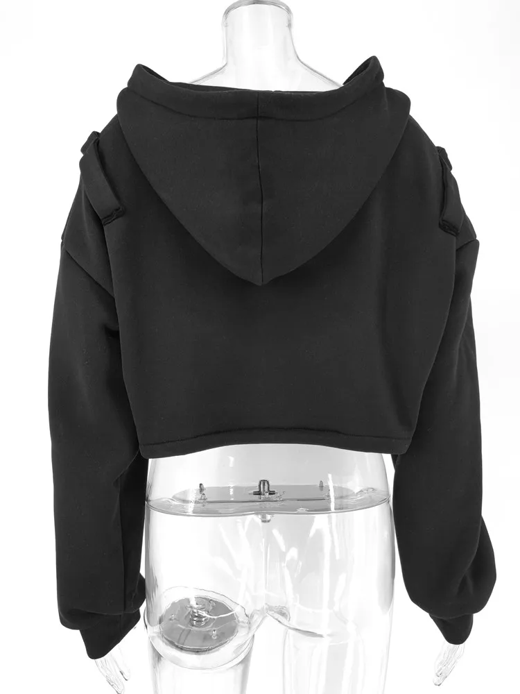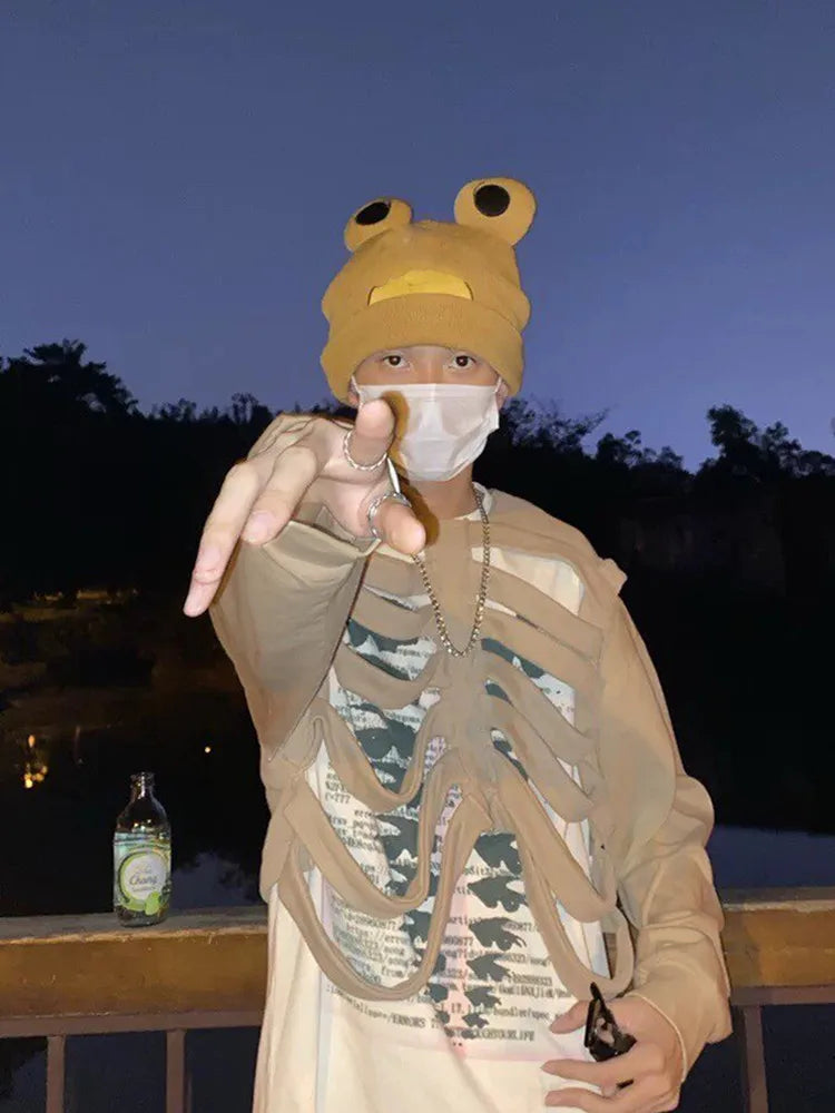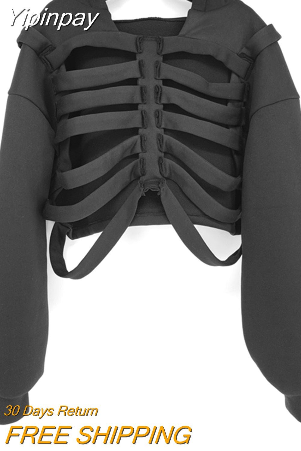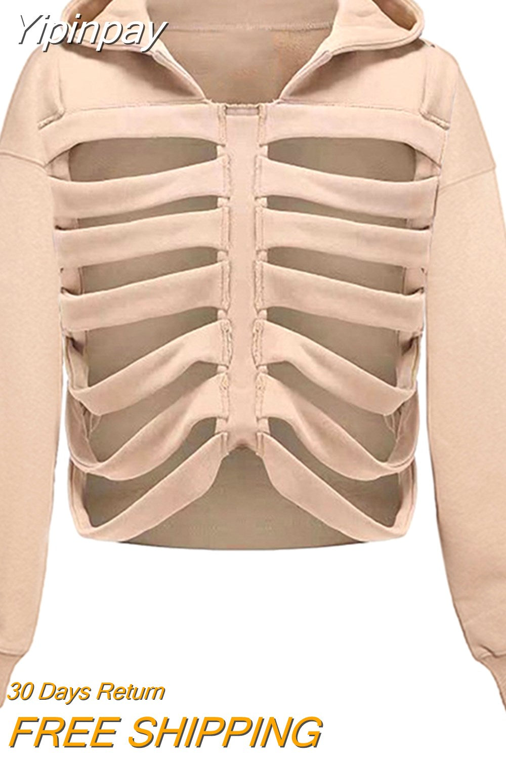 Yipinpay Women's Y2K Goth Cutout Zip-up Sweatshirt Grunge Long Sleeve Punk Harajuku Unisex Hooded Skeleton Hollow Pullovers