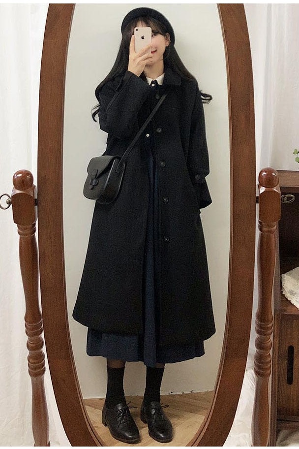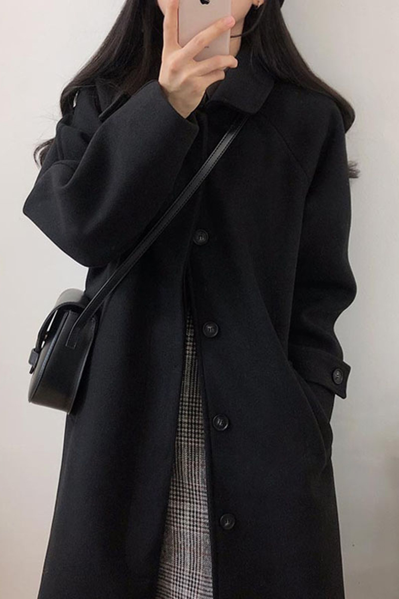 Yipinpay Woolen Coat Women's New Korean Version Of Black Medium-Length Tweed Coat Is Popular To Thicken Autumn And Winter