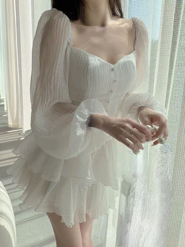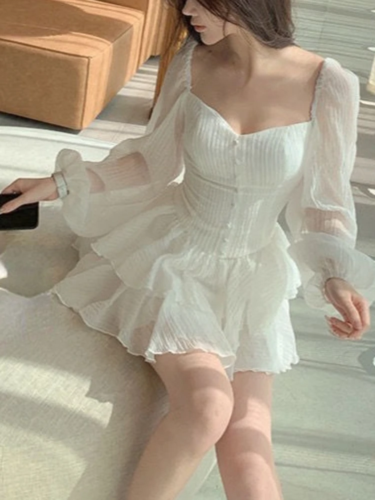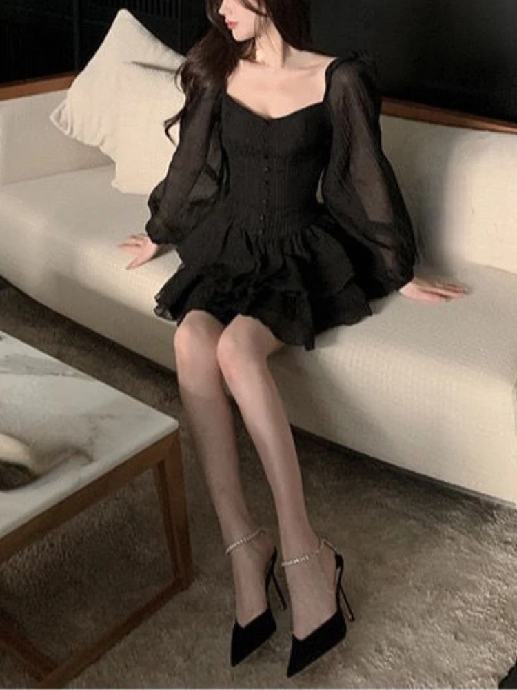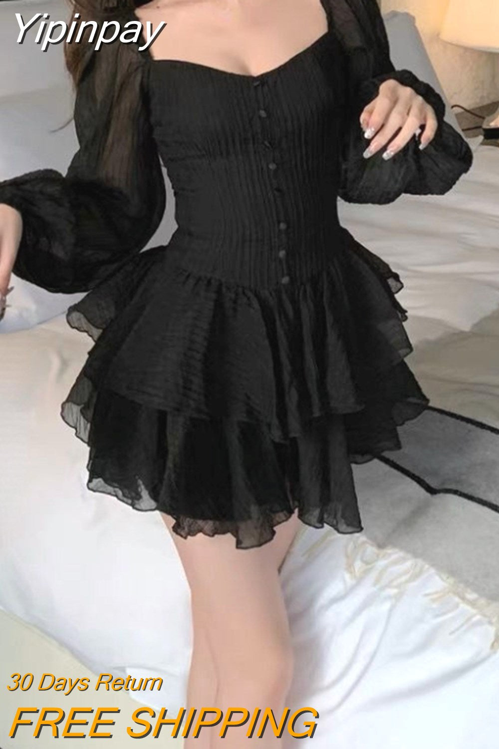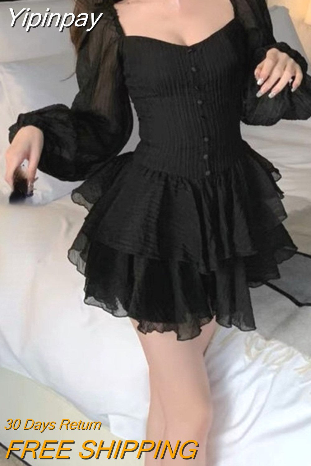 Yipinpay Y2k Mini Dress Woman Puff Sleeve Elegant Short Party Dress Casual 2023 Summer Pure Color One Piece Dress Korean Fashion