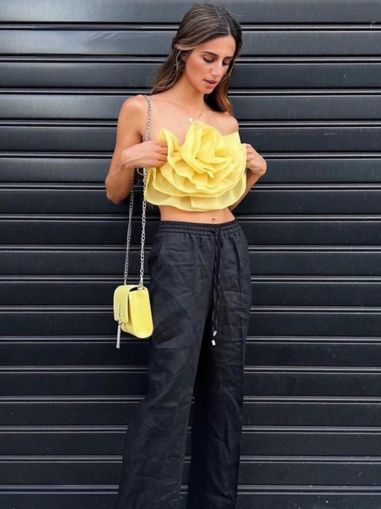 Yipinpay Yellow Rose Floral Top Autumn Winter Fashion Sleeveless Crop Tops Sets Christmas Party Women 2023 Blusas Mujer New